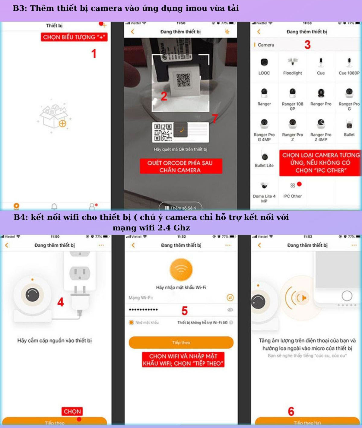 Cam chỉ kết nối wifi băng tần 2.4hz chứ chưa hỗ trợ 5g