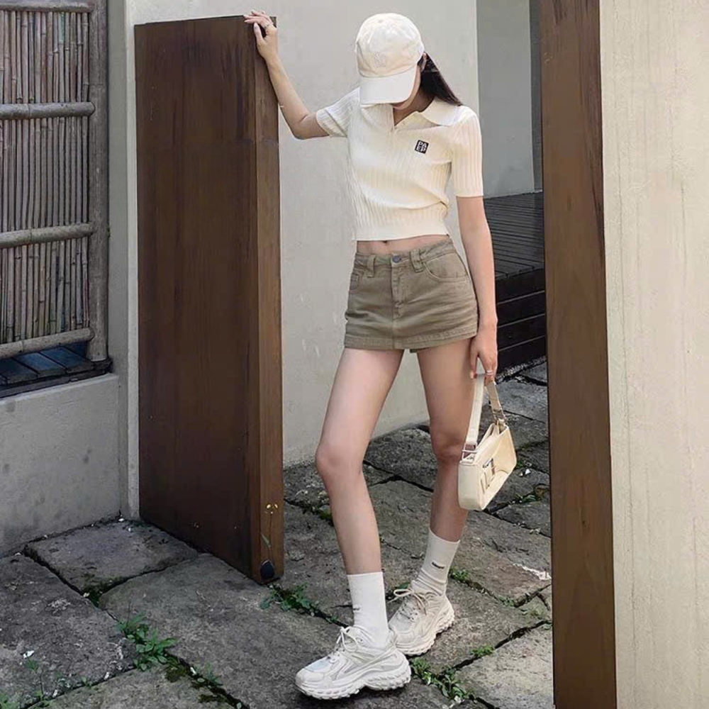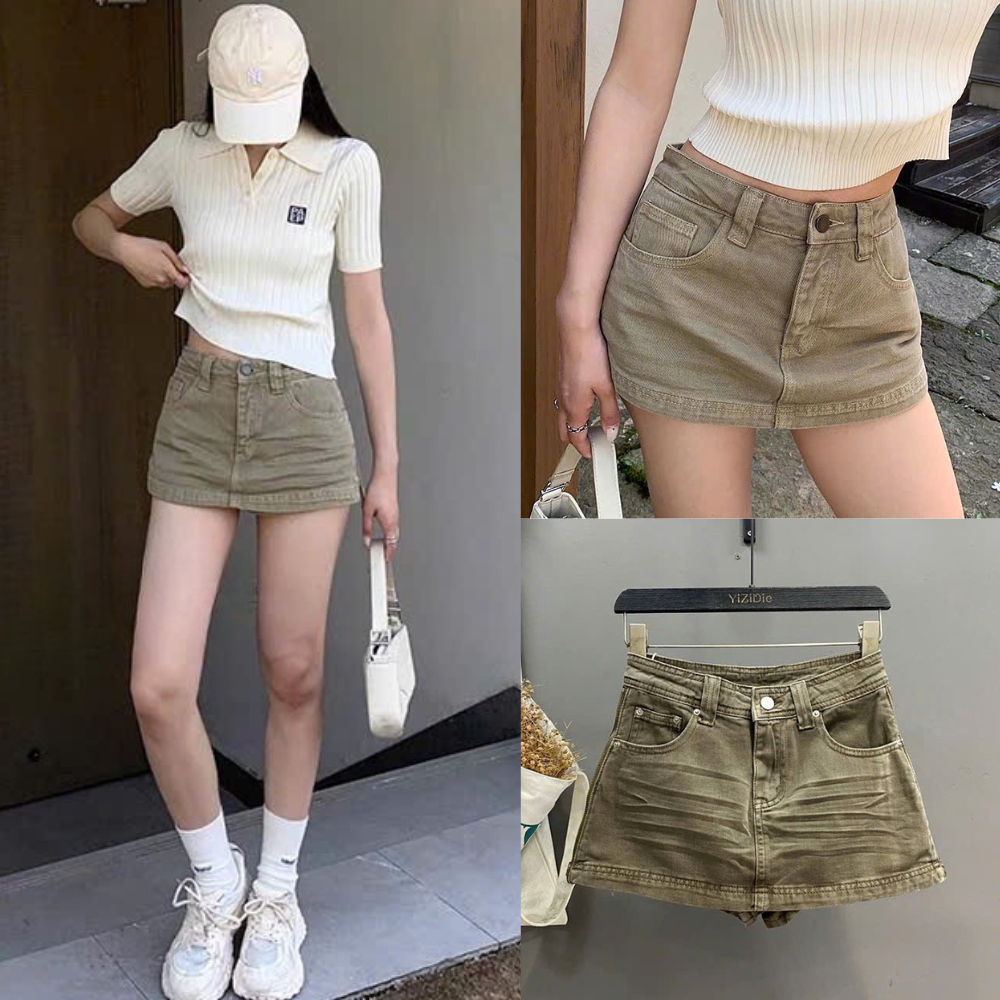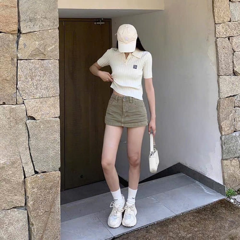 1. Tên sản phẩm: Chân váy kaki ngắn nữ màu rêu basic đẹp Hàn Quốc của hè chất vải dày dặn đứng dáng - phong cách Học sinh, sinh viên, năng động, dễ thương"