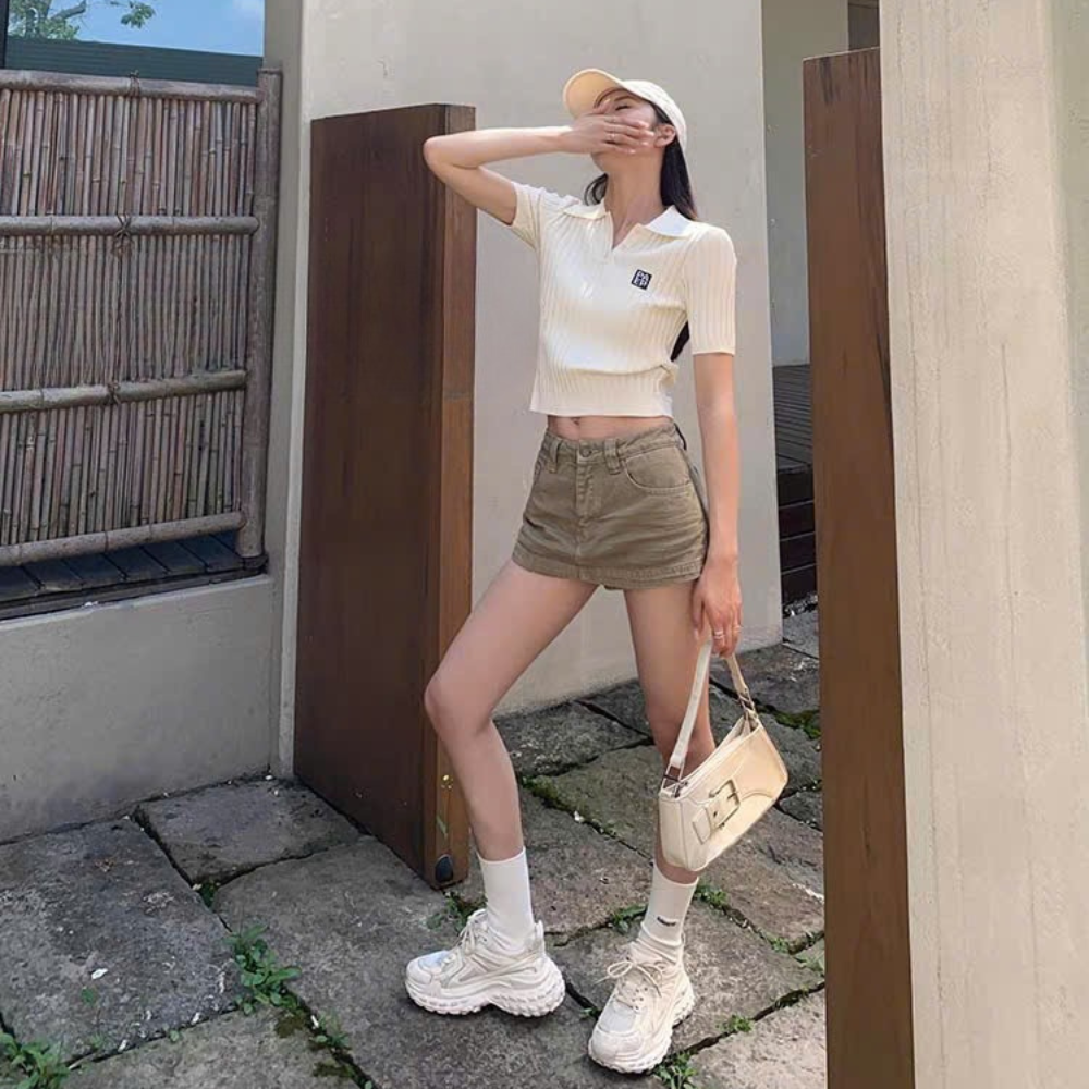 Mix cùng áo thun trẻ vai + sneaker: Style cute, năng động