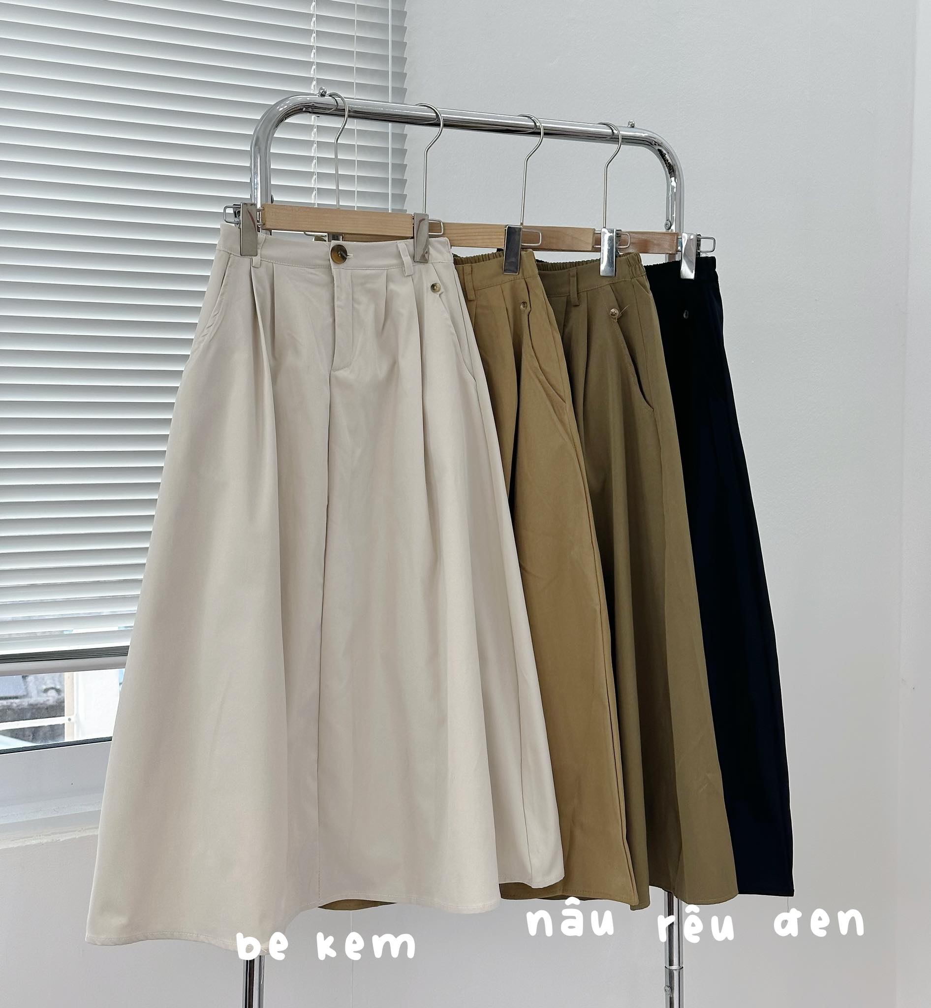 Chân váy kaki trơn form xòe dáng dài chun sau Ulzzang