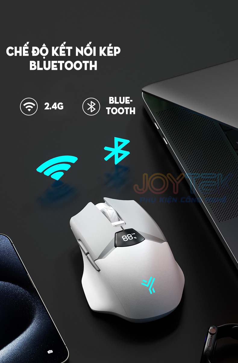🔗 Kết nối kép Bluetooth + 2.4GHz – Chuyển đổi linh hoạt giữa các thiết bị như PC, laptop, MacBook, iPad, smartphone mà không cần dây rườm rà.