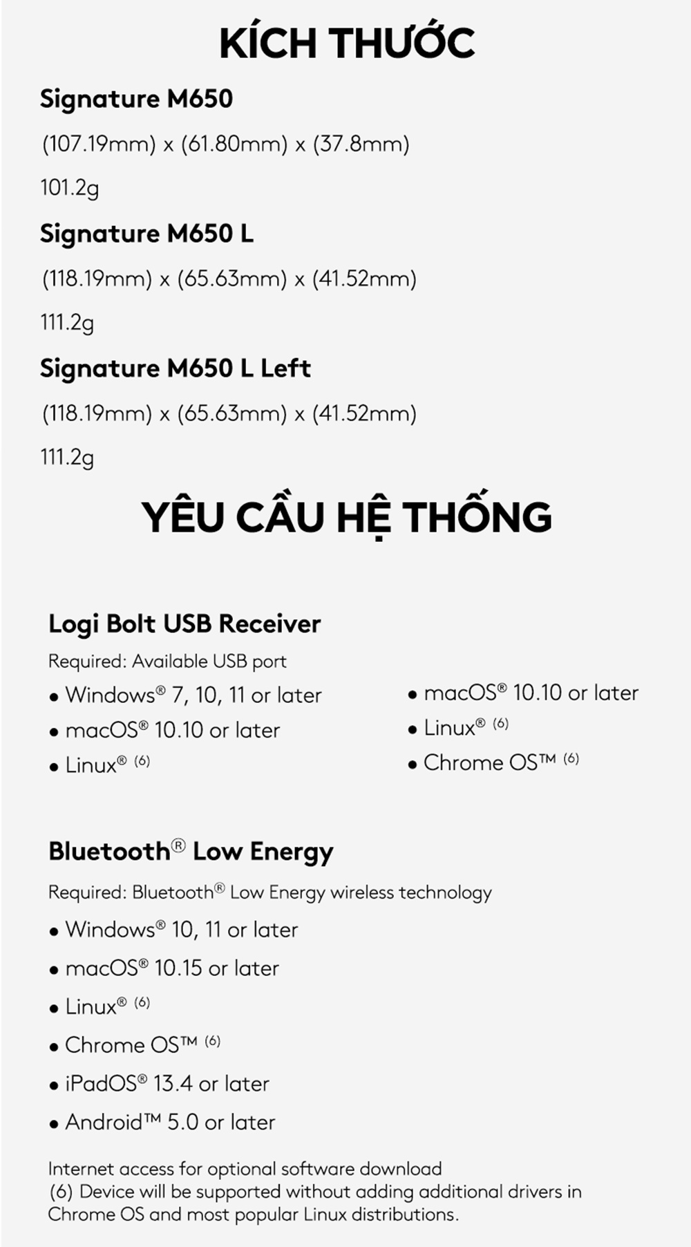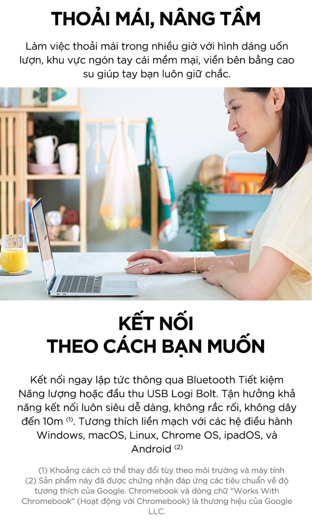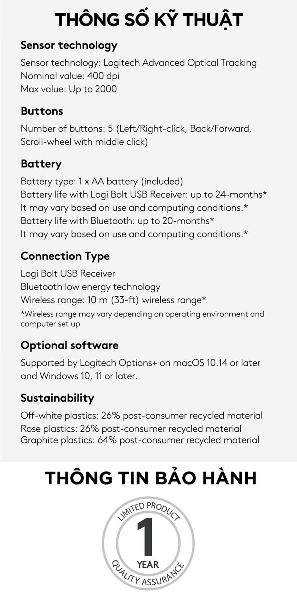 • KẾT NỐI THEO CÁCH BẠN MUỐN – Kết nối ngay lập tức thông qua Bluetooth™ Tiết kiệm Năng lượng hoặc đầu thu USB Logi Bolt.