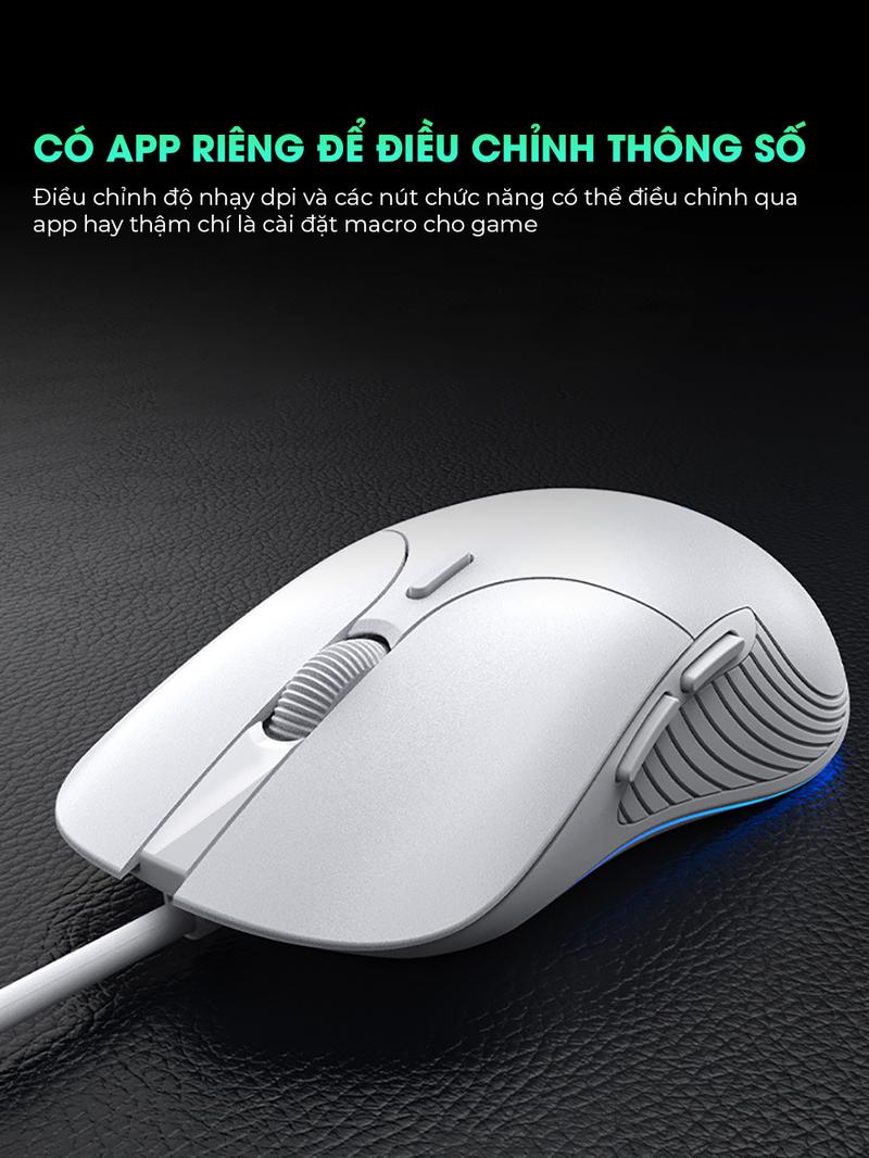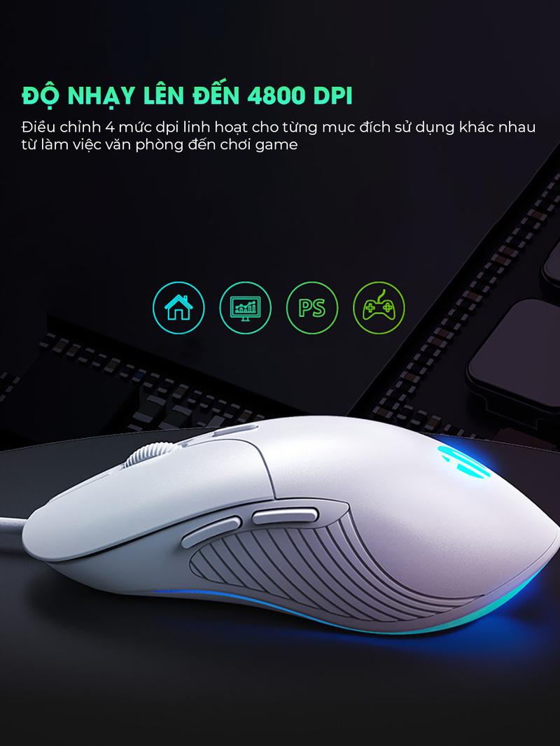 • Điều chỉnh độ nhạy 4 cấp độ lên đến 8800 DPI phù hợp theo từng công việc