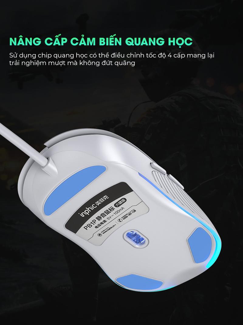 Chuột máy tính gaming SIDOTECH INPHIC PB1 có app hỗ trợ macro game pubg liên minh 8800 DPI thiết kế công thái học ôm tay viền chống trượt có LED 4 màu tắt âm silent click văn phòng