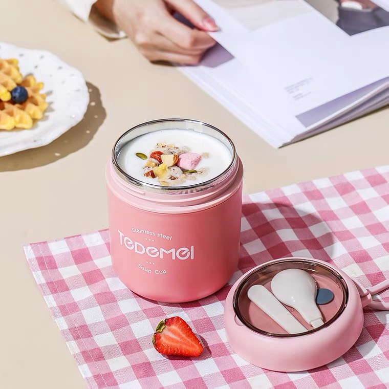 Cốc đựng canh, đựng cháo inox 304 TEDEMEI giữ nhiệt cực lâu tặng kèm muỗng