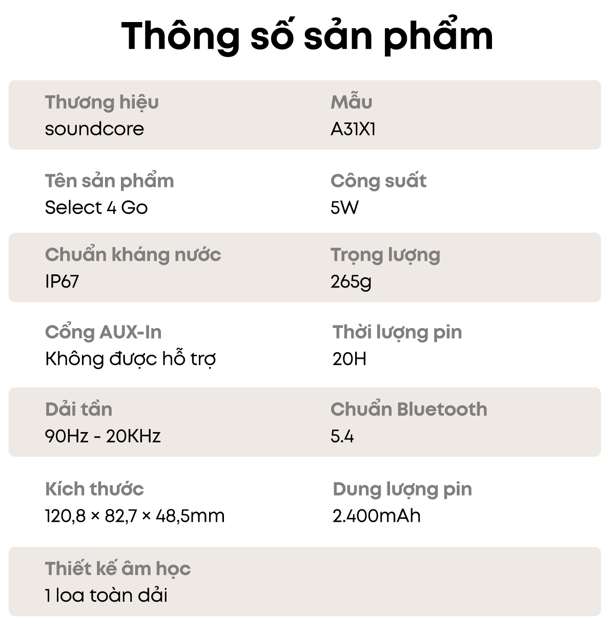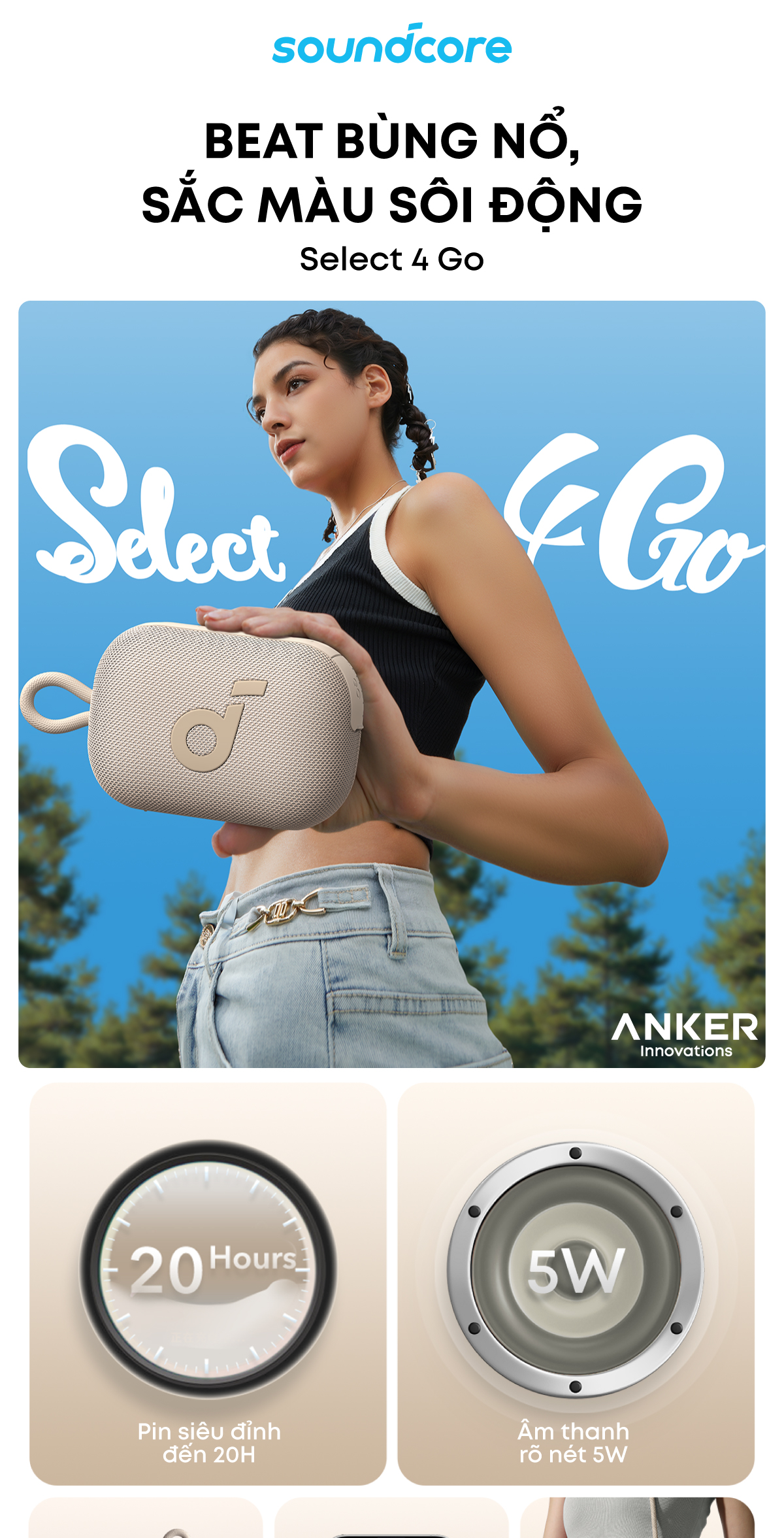 Combo 2 Loa bluetooth True Wireless Soundcore Select 4 Go | Pin 20 giờ | Kháng bụi, nước IP67