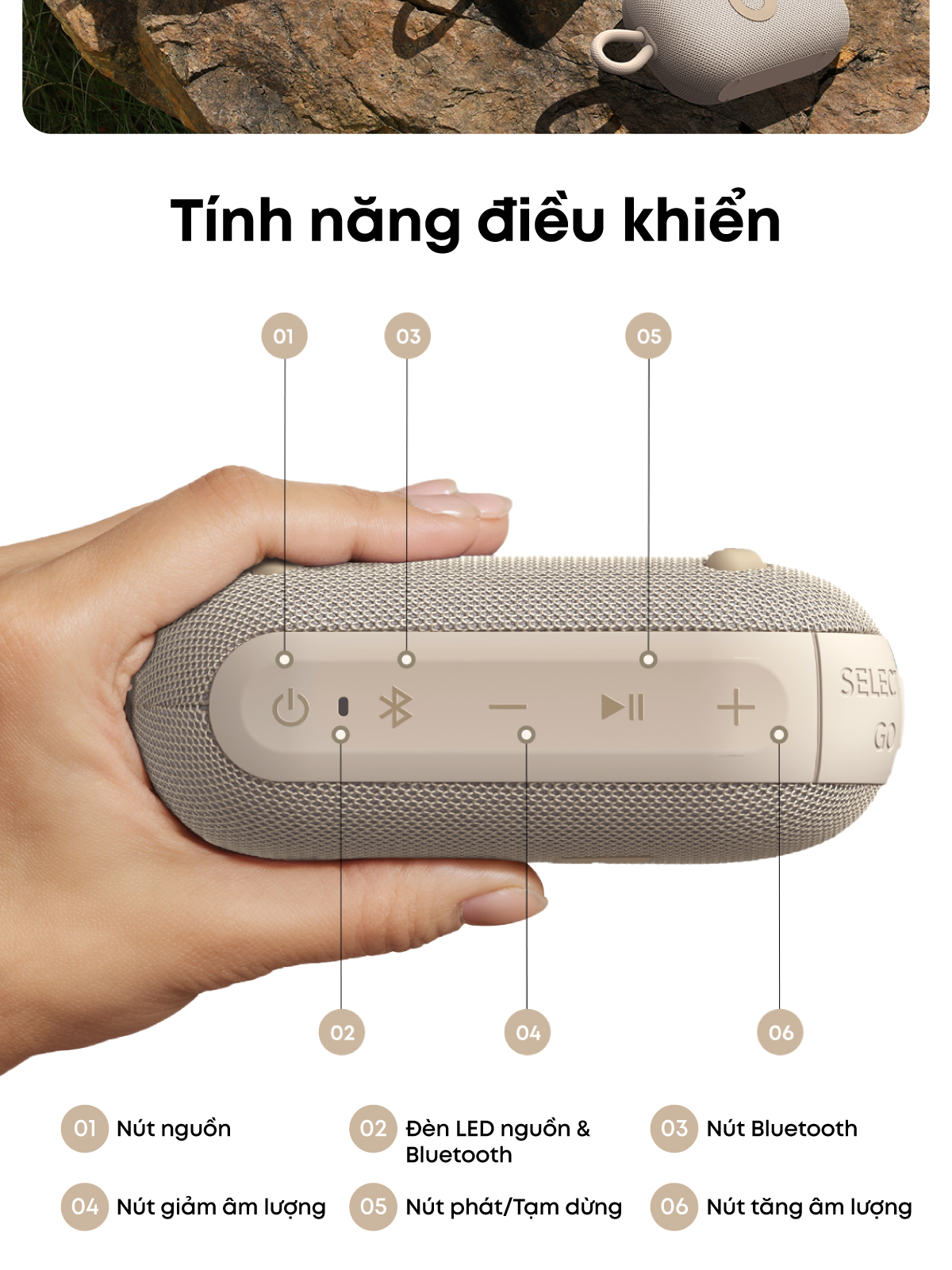 Tính năng TWS (True Wireless Stereo) cho phép kết nối 2 loa không dây tối ưu trải nghiệm âm thanh nổi.