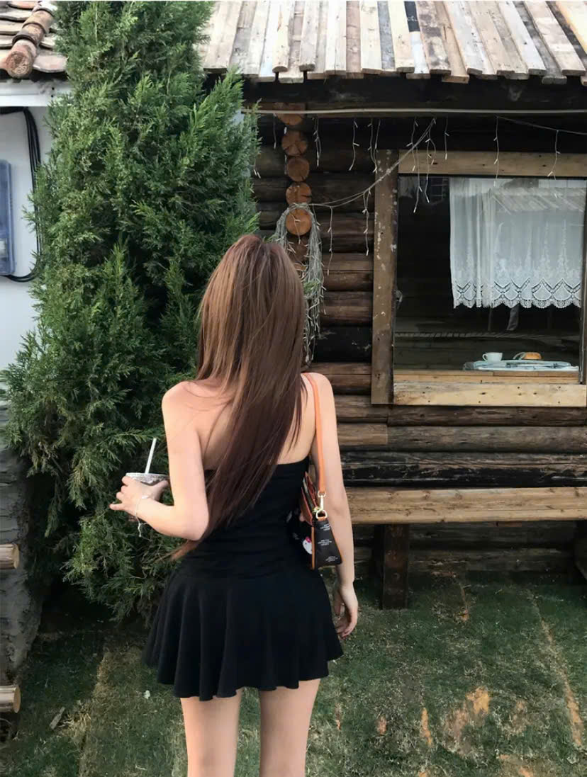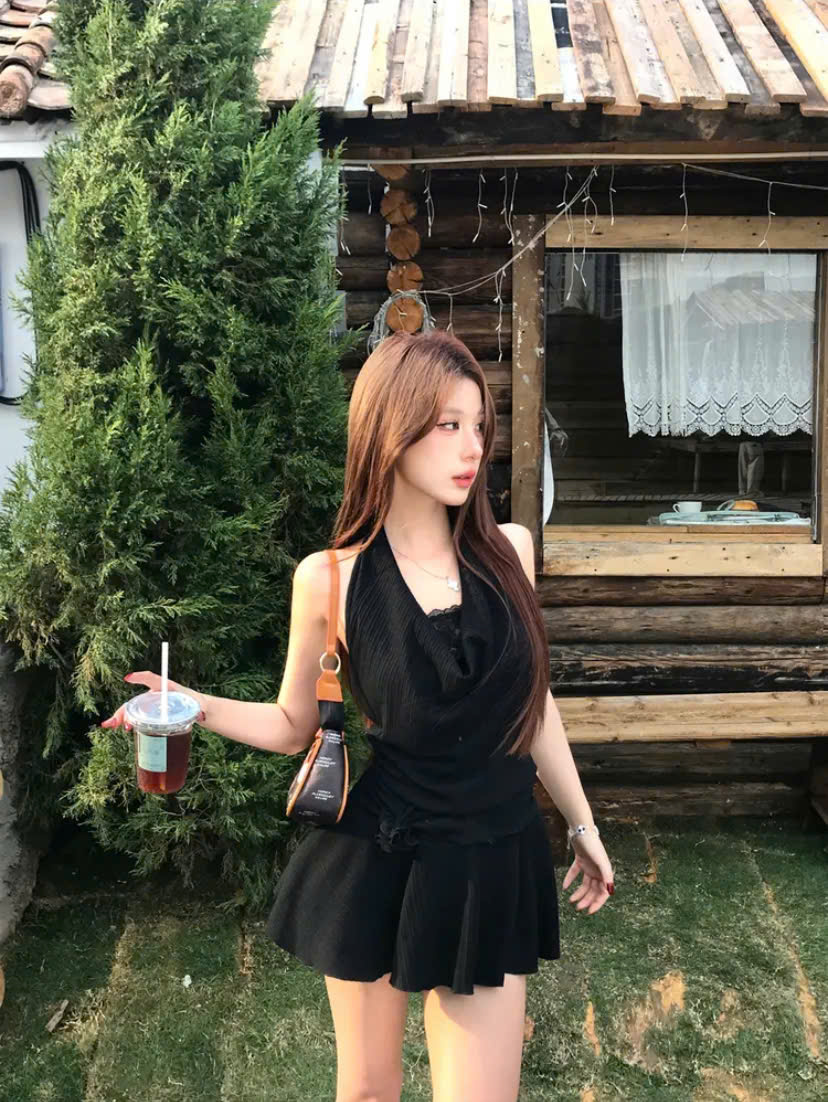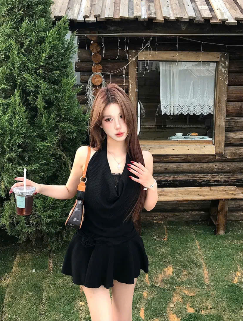 Đầm Cổ Yếm Hở Lưng, Đầm Váy Ôm Body Cổ Yếm Tùng Xoè Màu Đen Sang Chảnh Tiểu Thư Cho Nàng Đi Tiệc, Đi Chơi Đều Xinh