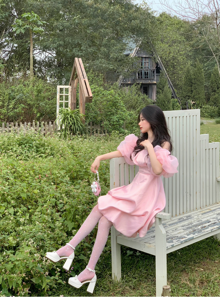 Đầm nữ dự tiệc Lena dress có bigsize thiết kế cúp ngực xòe tay bồng nhún CaoCaobycaochen có 3 màu đen trắng hồng