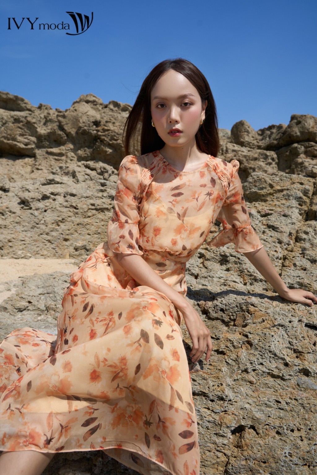 Đầm hoa xòe tay lỡ nữ IVY moda MS 48M8775