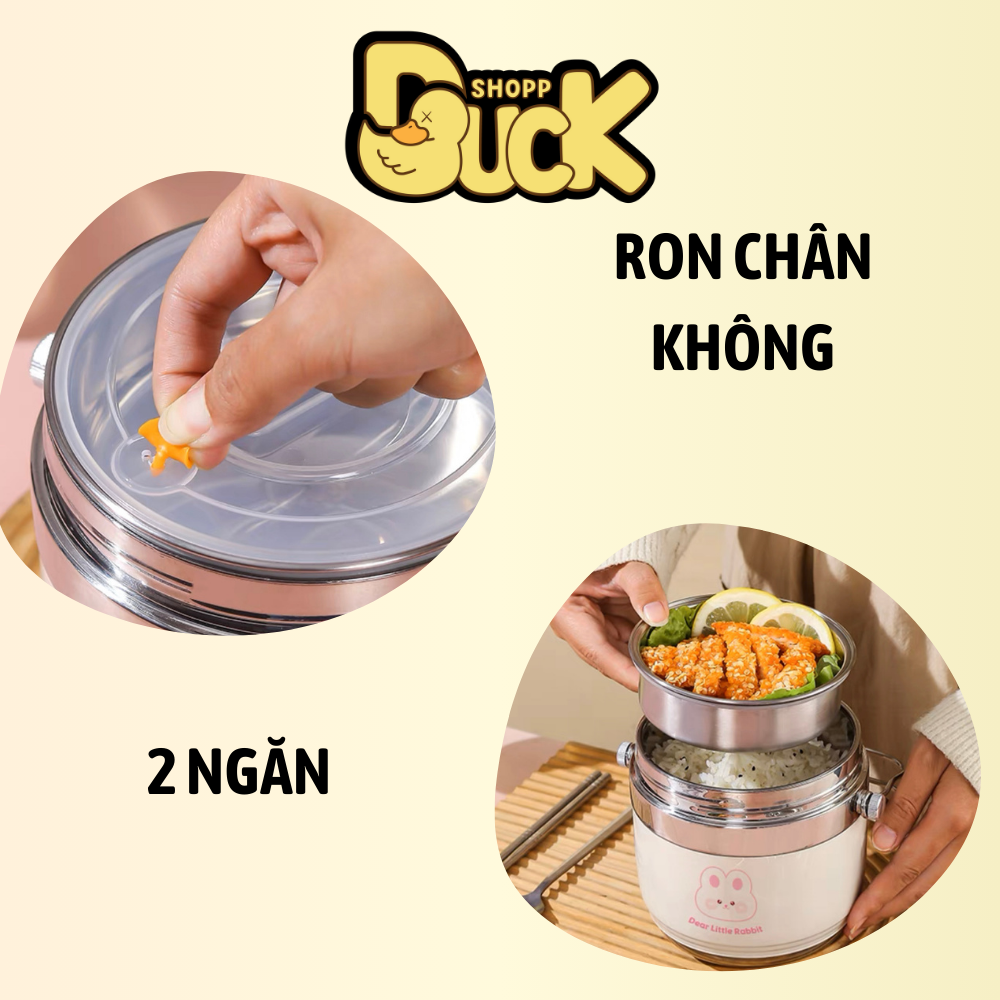 Dear Bear - Rabbit Hộp đựng cơm giữ nhiệt 1500ml - Cặp lồng inox đựng cơm giữ nhiệt full inox 304 hình tròn cà men