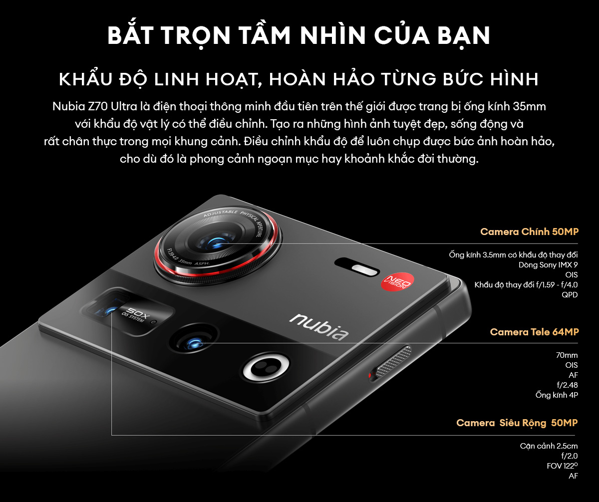 Điện Nubia Z70 Ultra I Chip Snapdragon 8 Elite I Màn AMOLED 144Hz I Camera cảm biến Sony I IP69 I Pin 6150mAh sạc 80W