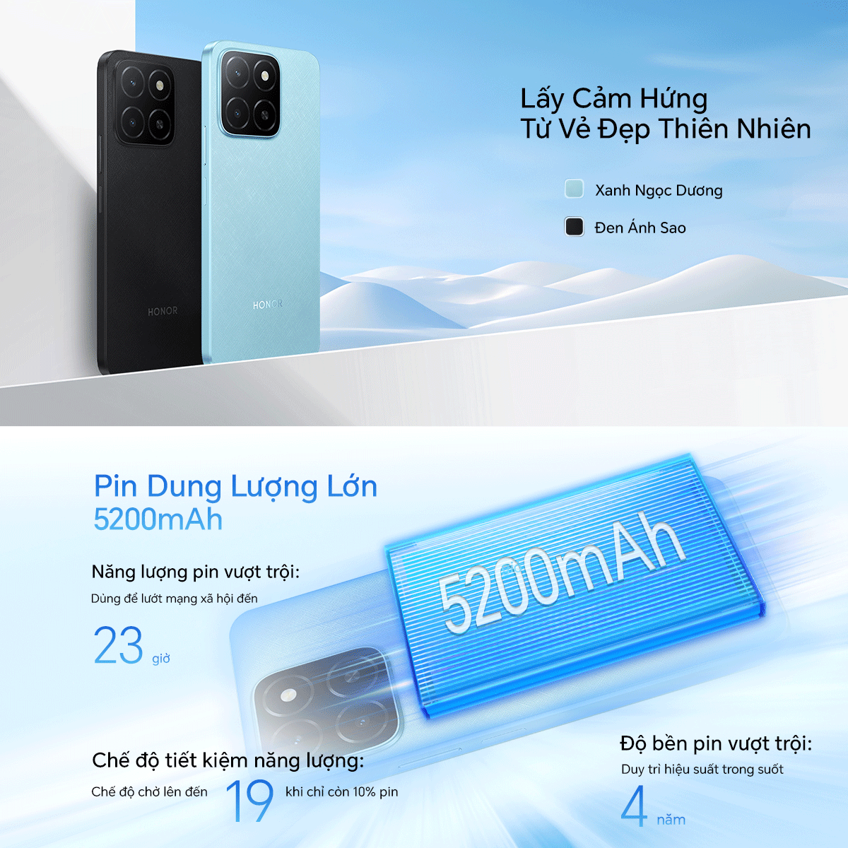 4. Thông tin trên được lấy từ Phòng thí nghiệm HONOR, tiến hành thử nghiệm ở nhiệt độ 25°C và độ ẩm tương đối từ 45% - 80%. Dữ liệu này dựa trên các tính toán lý thuyết. Tế bào pin được lấy mẫu và kiểm tra trong môi trường của Phòng thí nghiệm HONOR. Sau 1000 chu kỳ sạc, dung lượng pin vẫn trên 87%