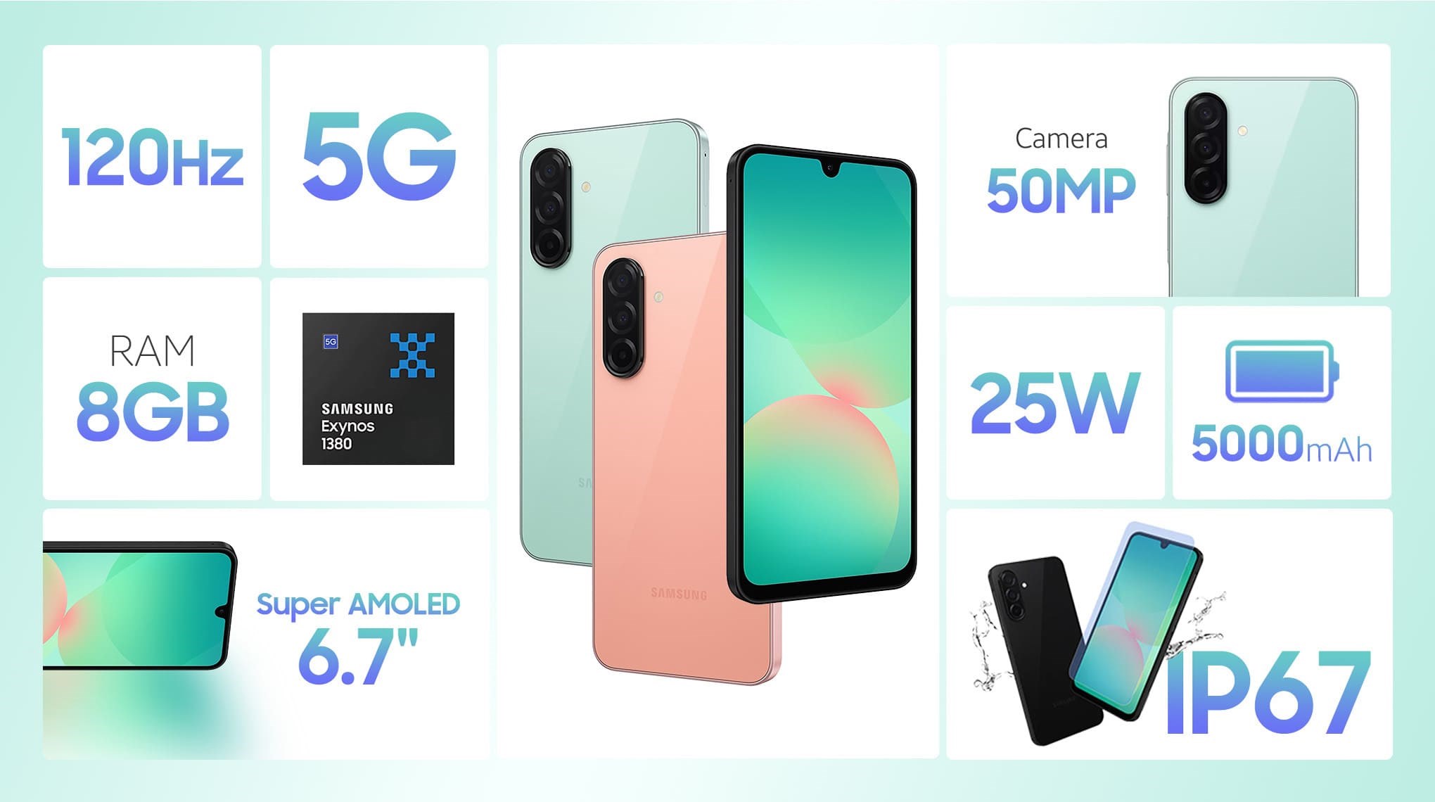 - Trang bị vi xử lý Exynos 1380 tám nhân, mang lại sự cân bằng tối ưu giữa hiệu suất mạnh mẽ và tiết kiệm năng lượng. Kết hợp với RAM 8 GB, máy đảm bảo khả năng đa nhiệm mượt mà, cho phép bạn chuyển đổi giữa các ứng dụng nhanh chóng, hạn chế tình trạng giật lag.