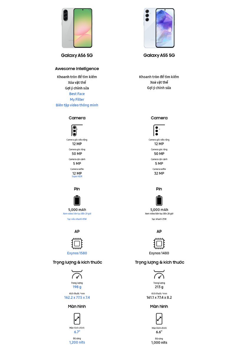 (KOL) Điện thoại Samsung Galaxy A56 5G 8GB | 128GB, Màn hình 6.7" - Chip Exynos 1580 - 50MP - 5000mAh, Bảo hành 2 năm