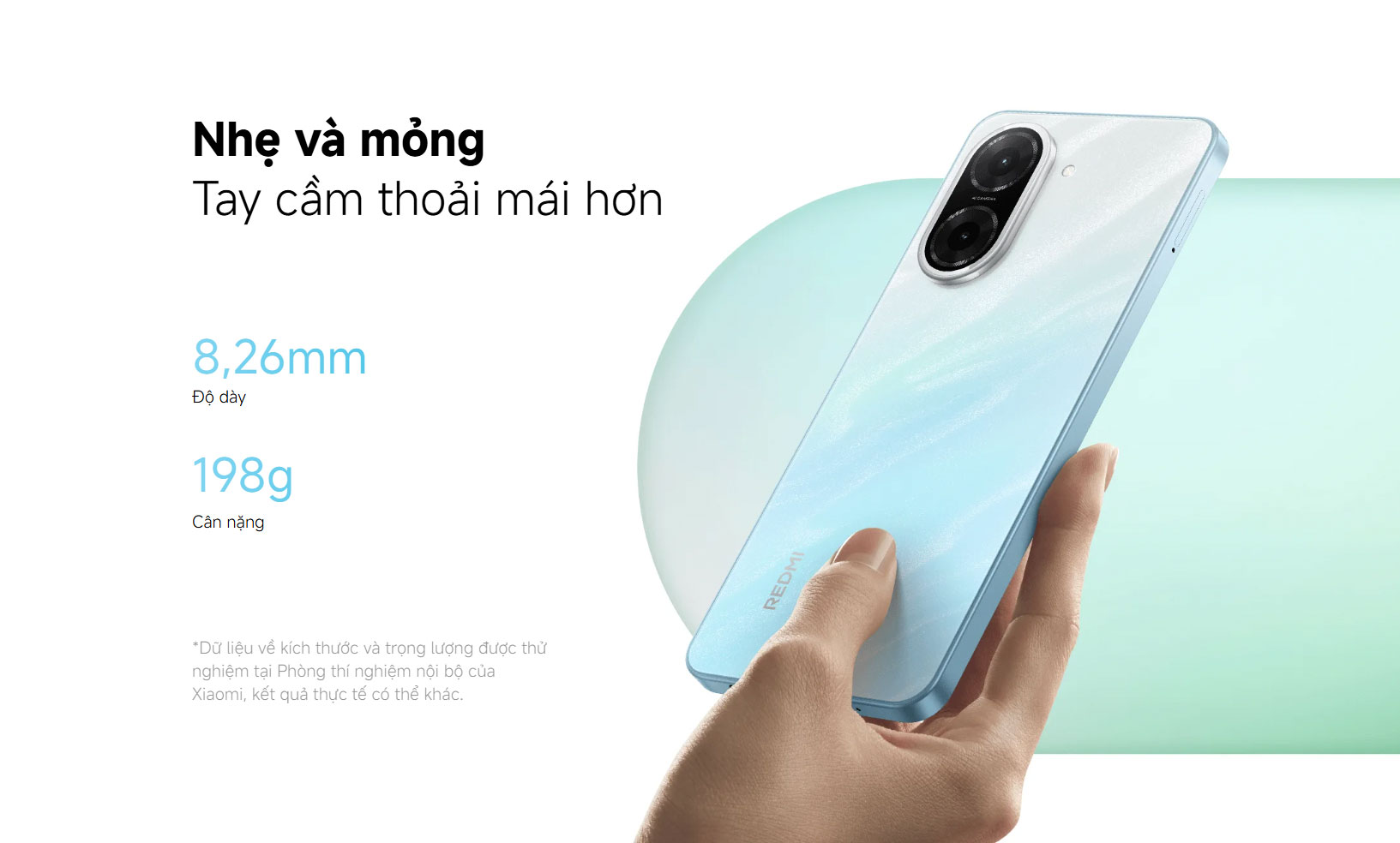 Redmi A5 có kiểu dáng hiện đại, mặt lưng nhám chống bám vân tay, khung viền bo cong giúp cầm nắm thoải mái. Có nhiều màu sắc trẻ trung phù hợp với học sinh, sinh viên hoặc người lớn tuổi.