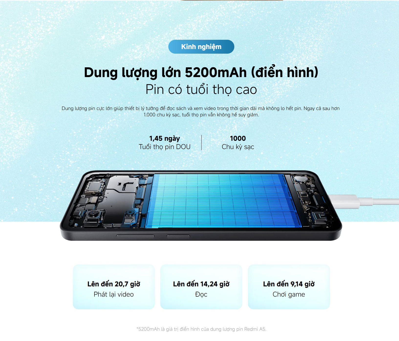 - Pin 5000mAh – Dùng 2 ngày thoải mái