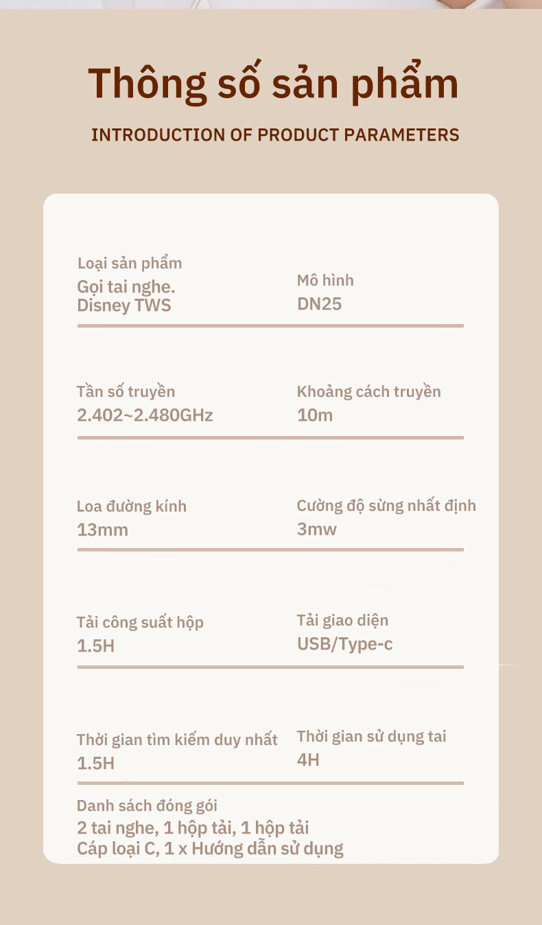 Disney DN25 Tai nghe Bluetooth 5.4 Tai nghe không dây Tai nghe không dây HIFI Tai nghe âm thanh nổi Hỗ trợ tất cả các điện thoại thông minh cho ios Android.
