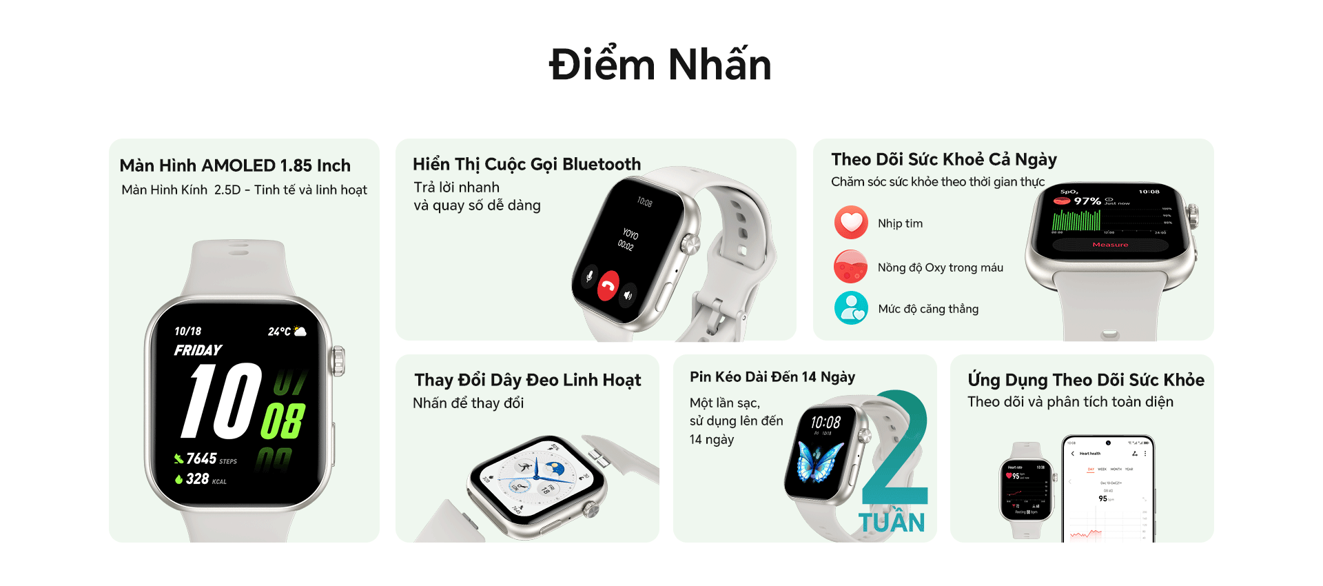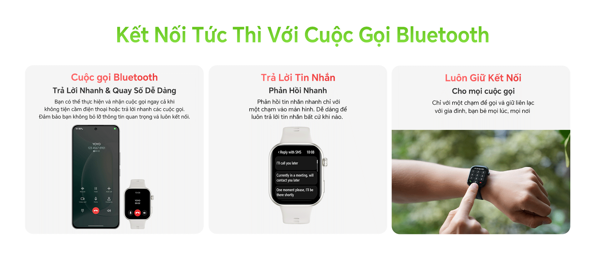 2. Cuộc gọi Bluetooth yêu cầu kết nối Bluetooth với điện thoại. Tính năng Từ chối tin nhắn SMS tương thích với Android 6.0 trở lên và không hỗ trợ trên thiết bị iOS.