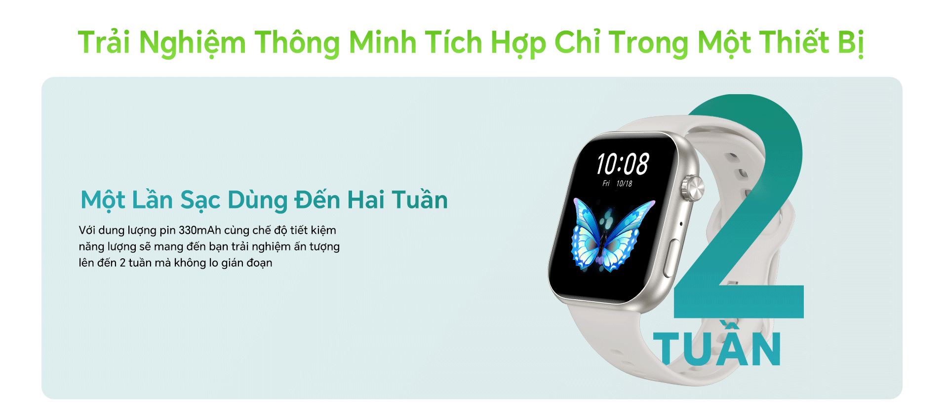 Dung lượng pin 330mAh trải nghiệm hoạt động lên đến 2 tuần