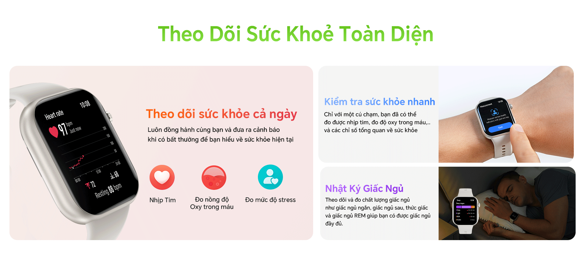 Theo dõi nhịp tim, nồng độ Oxy trong máu, đo mức độ Stress và nhật ký giấc ngủ
