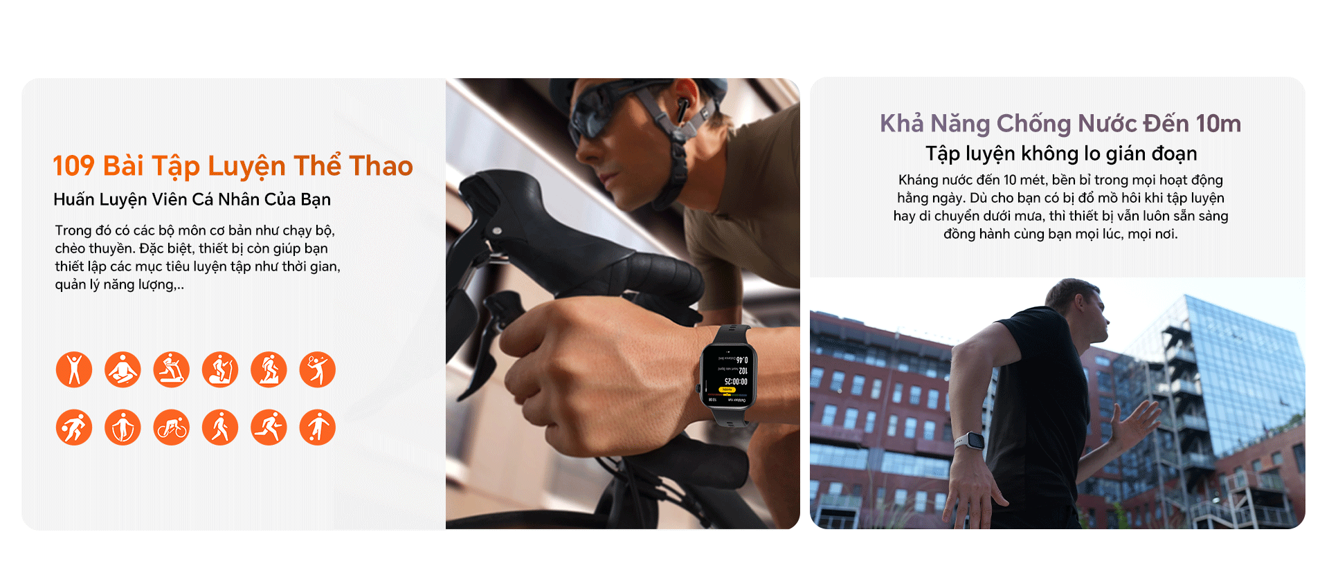 9. Khả năng chống nước đạt tiêu chuẩn ISO 22810:2010 (1ATM) – có thể chịu áp suất tương đương 10m nước tĩnh trong 10 phút, nhưng không tương đương với khả năng chống nước ở độ sâu 10m thực tế. Ngoài ra, đồng hồ đạt tiêu chuẩn IP68 theo IEC 60529:2013, phù hợp với tiếp xúc nước hàng ngày nhưng không dành cho bơi lội hoặc hoạt động dưới nước kéo dài. Khả năng chống nước có thể giảm dần theo thời gian.