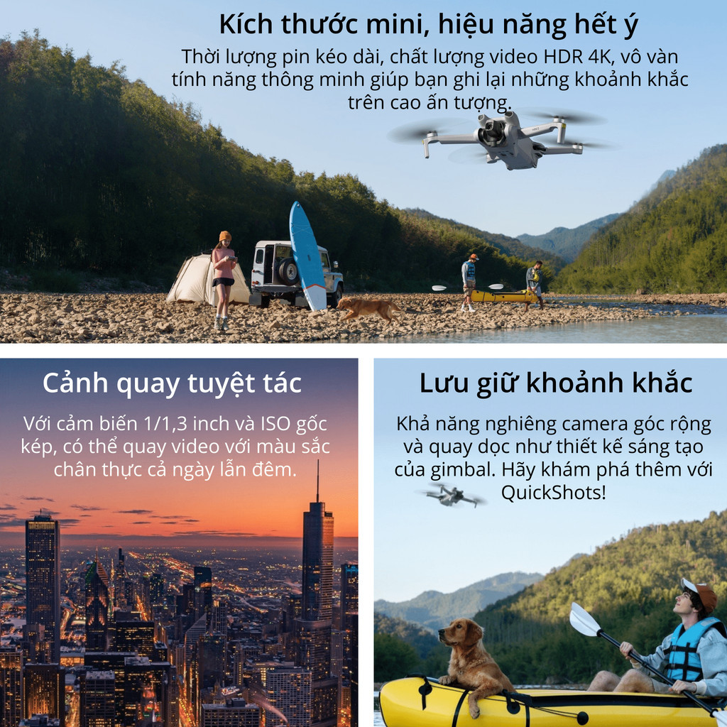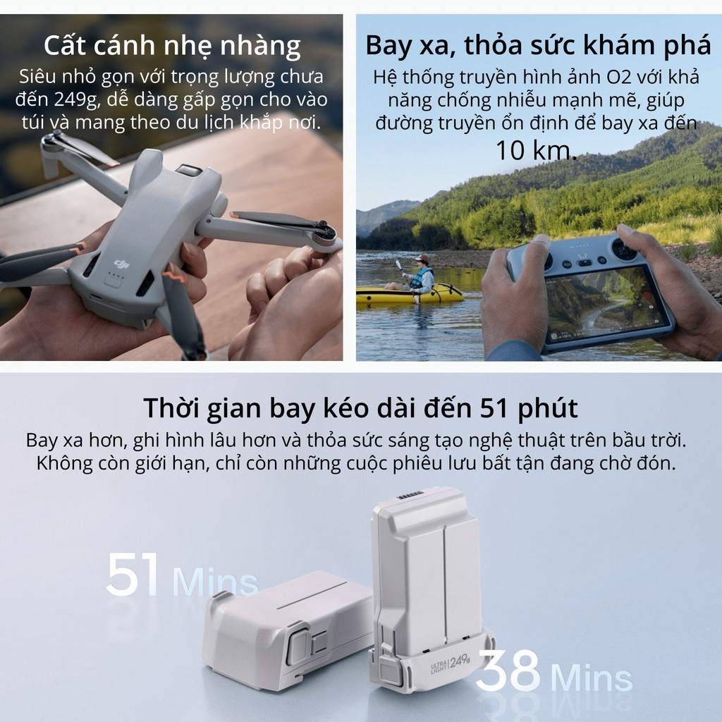 Flycam DJI Mini 3 kèm điều khiển (DJI RC-N1) nhỏ gọn, quay video chất lượng cao 4K HDR