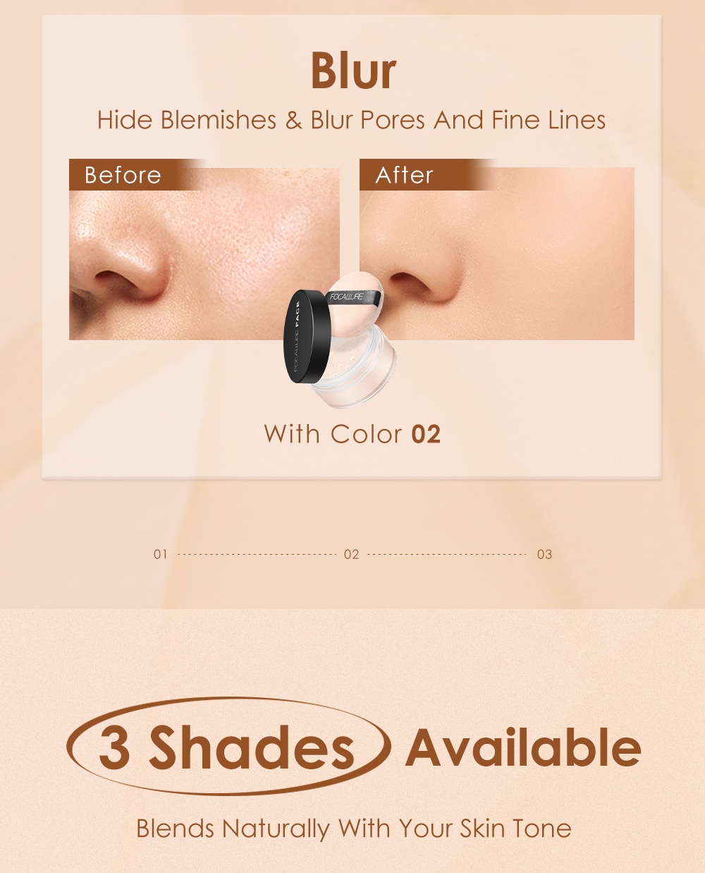 02: phù hợp với màu da châu Á, phù hợp với phụ nữ có làn da tự nhiên hoặc màu da trung bình