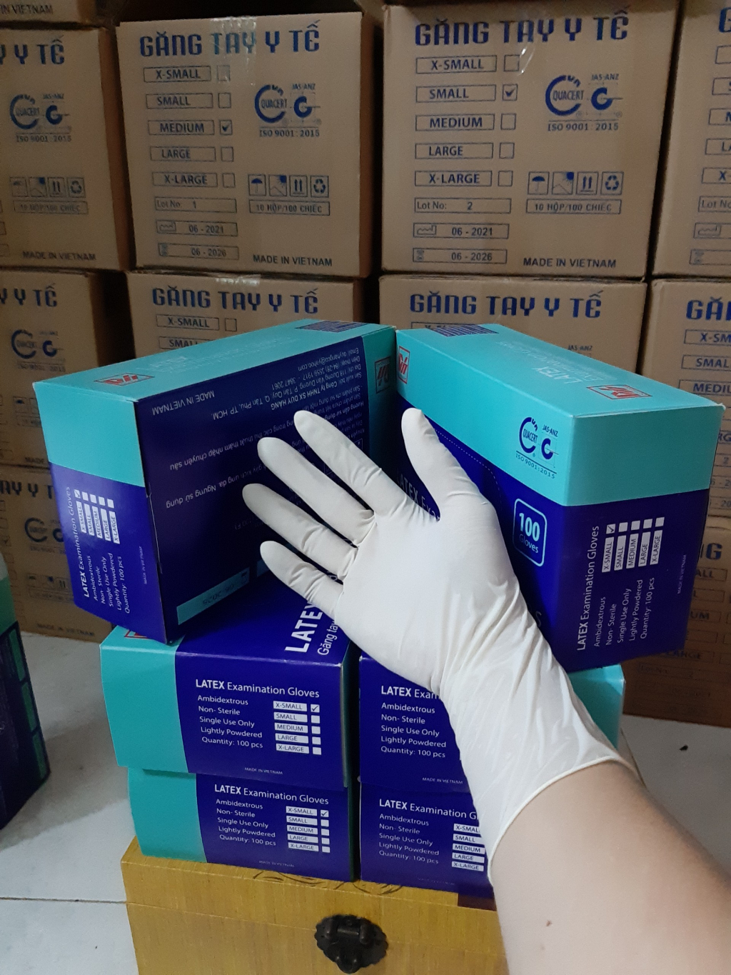 Sản phẩm Găng tay cao su Latex bao gồm: 1 hộp (100 chiếc)