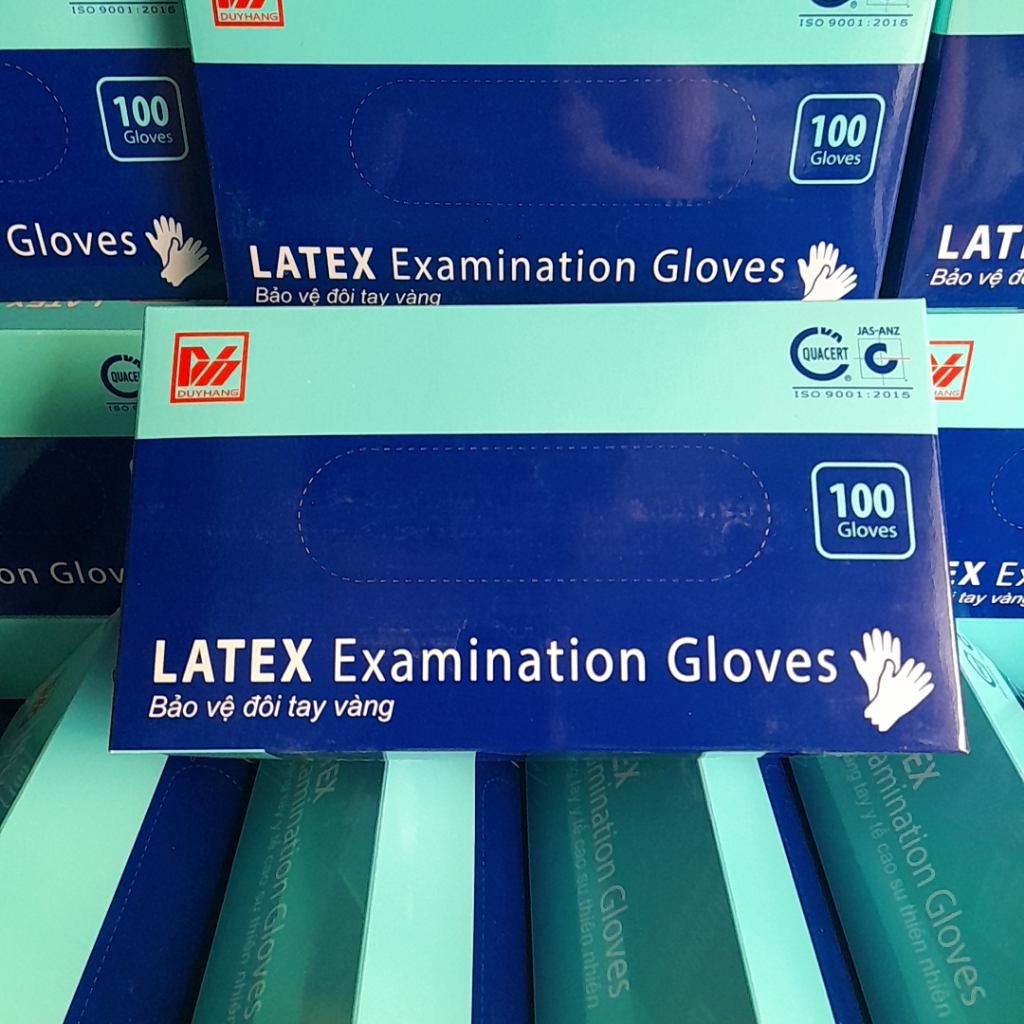 HỘP100 CHIẾC Găng tay Latex Duy Hàng cao su Thiên Nhiên Có Bột 6.5gr CỔ NGẮN CHÍNH HÃNG XS/S/M/L