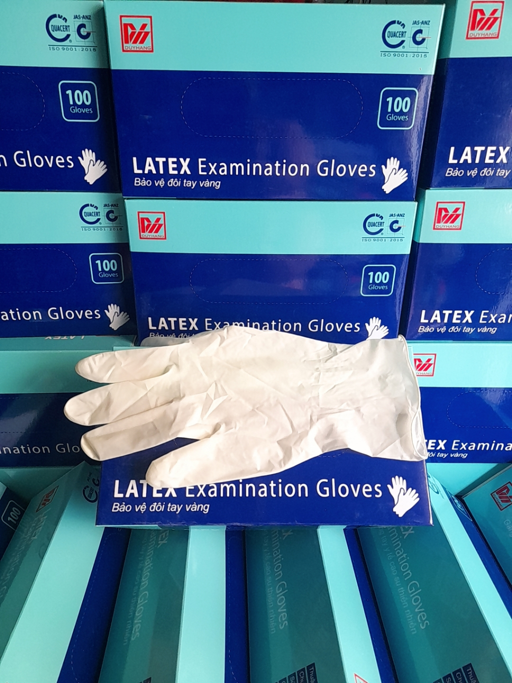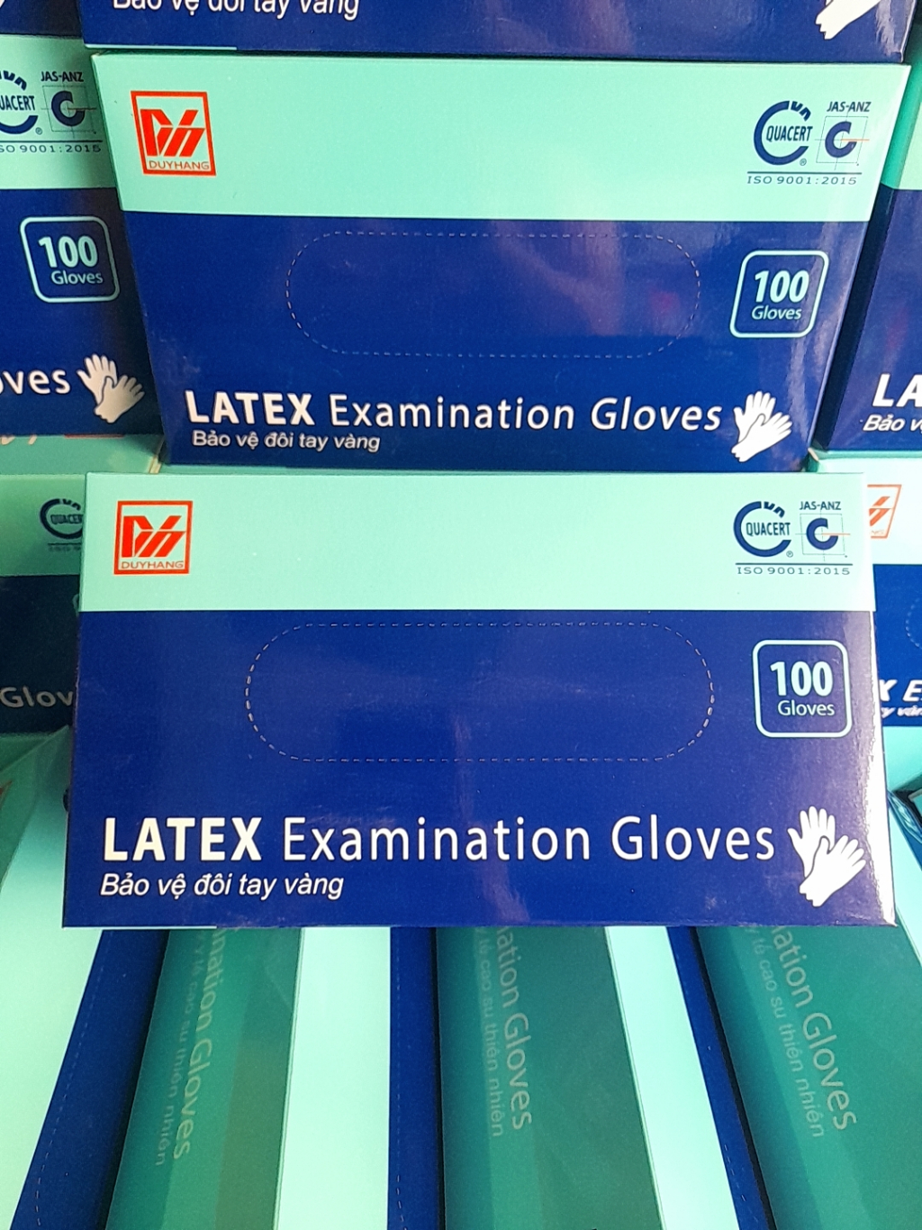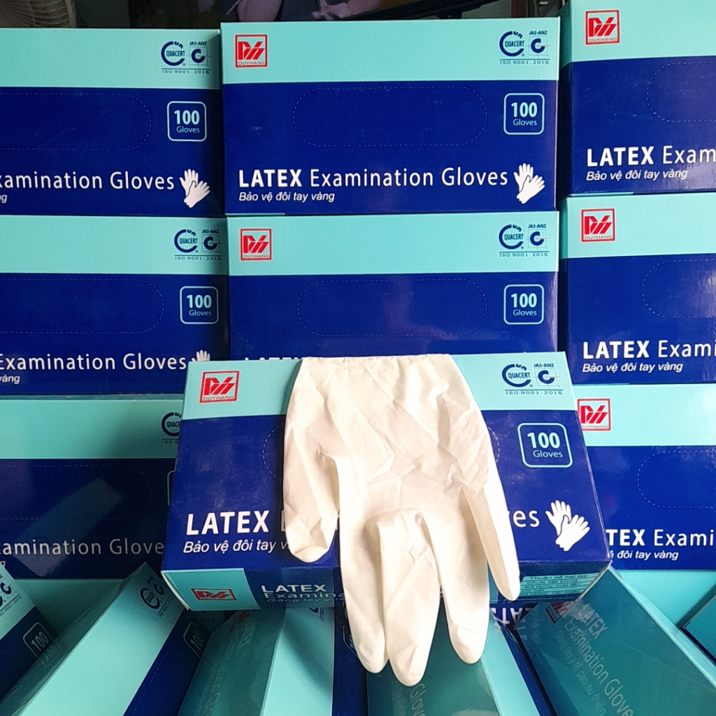 HỘP100CHIẾC Găng tay Latex Duy Hàng cao su Thiên Nhiên Có Bột 6.5gr CỔ NGẮN CHÍNH HÃNG XS/S/M/L