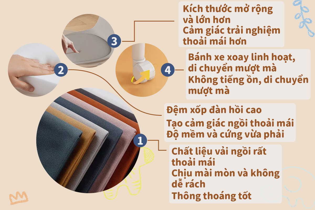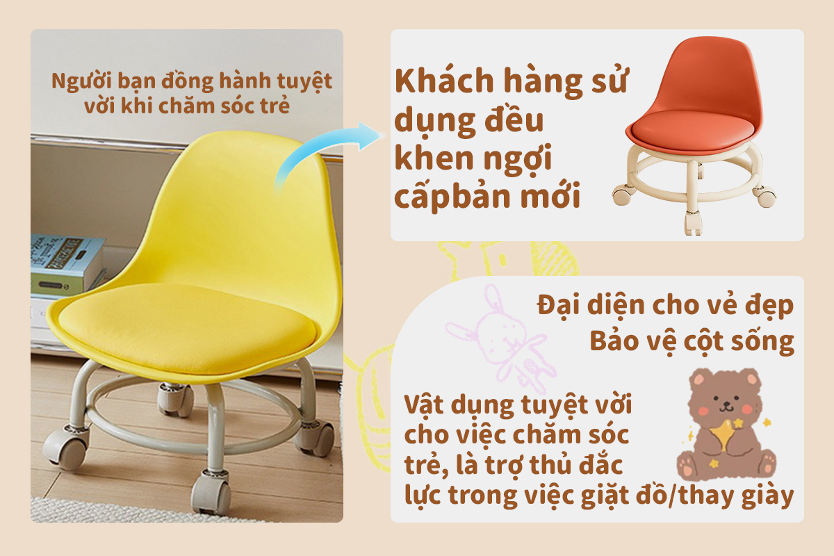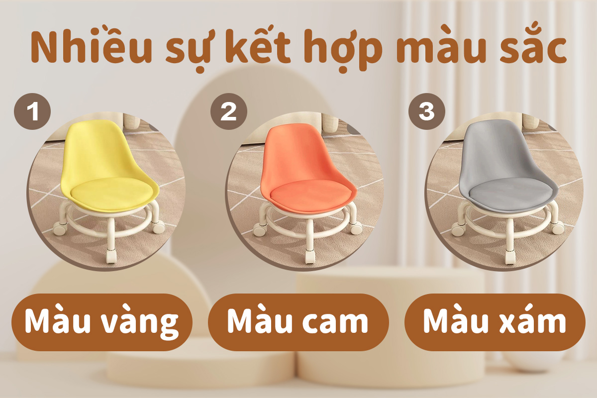 Ghế Ngồi Nhỏ Thương Hiệu iiko Có Bánh Xe Không Ồn Ghế Đẩu Cho Bé Ghế Tròn Xoay Bệt Đa Năng Có Nệm Êm Tiện Dụng