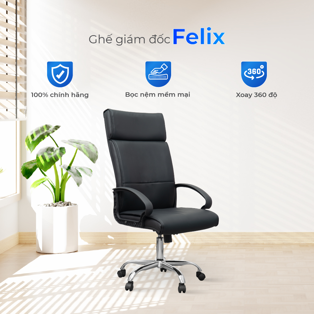 Ghế văn phòng cao cấp Felix Qui Phúc, chân xoay 360 độ, linh hoạt, chắc chắn, tựa lưng êm ái