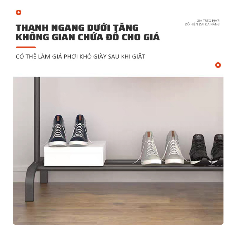 - Kệ treo quần áo đa năng là sản phẩm mới, được thiết kế hiện đại, nhỏ gọn, tiện dụng chắc chắn với nhiều tầng giúp bạn treo và để được rất nhiều quần áo, chăn màn, túi xách,cùng các vật dụng gia đình.