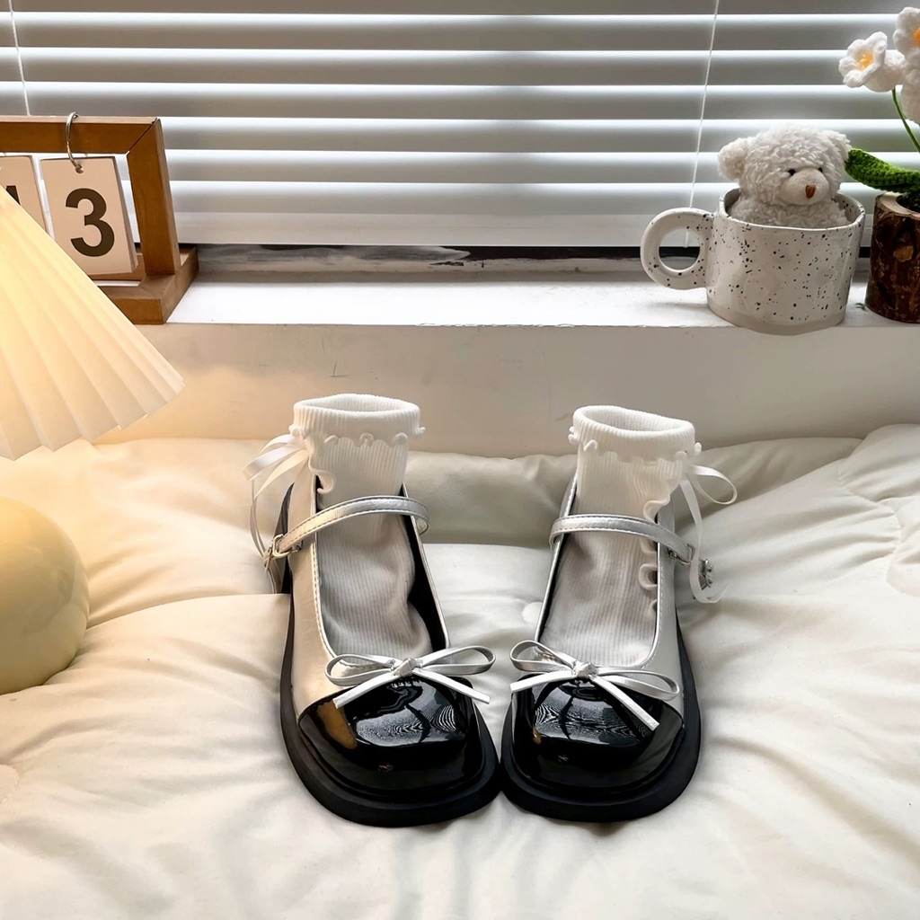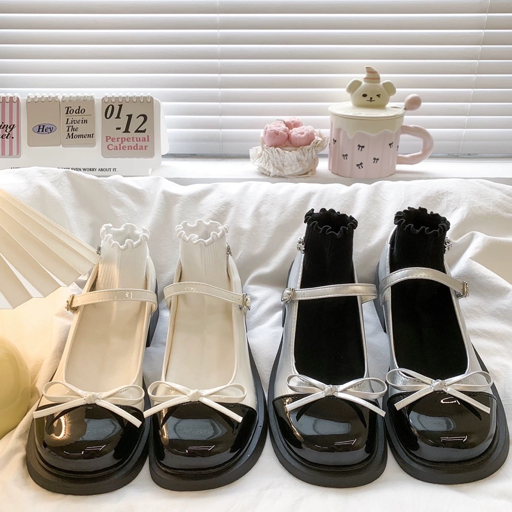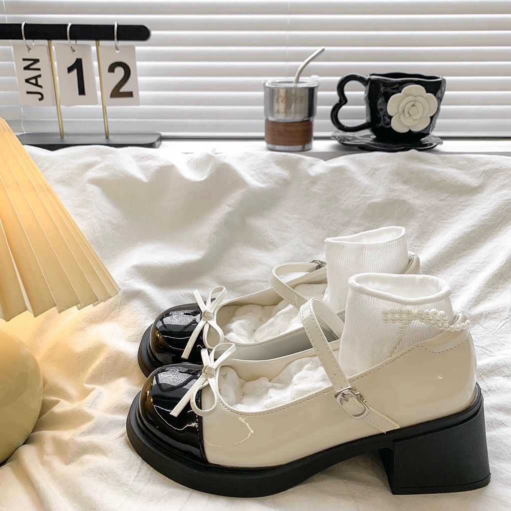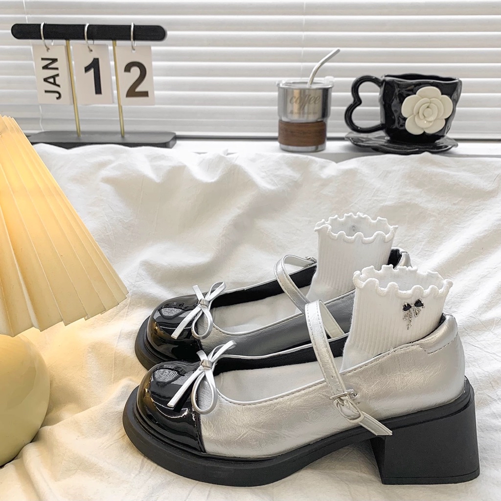 Giày Búp Bê Lolita Nữ Cao Gót 5p Gắn Nơ Giữa Thời Trang Mới
