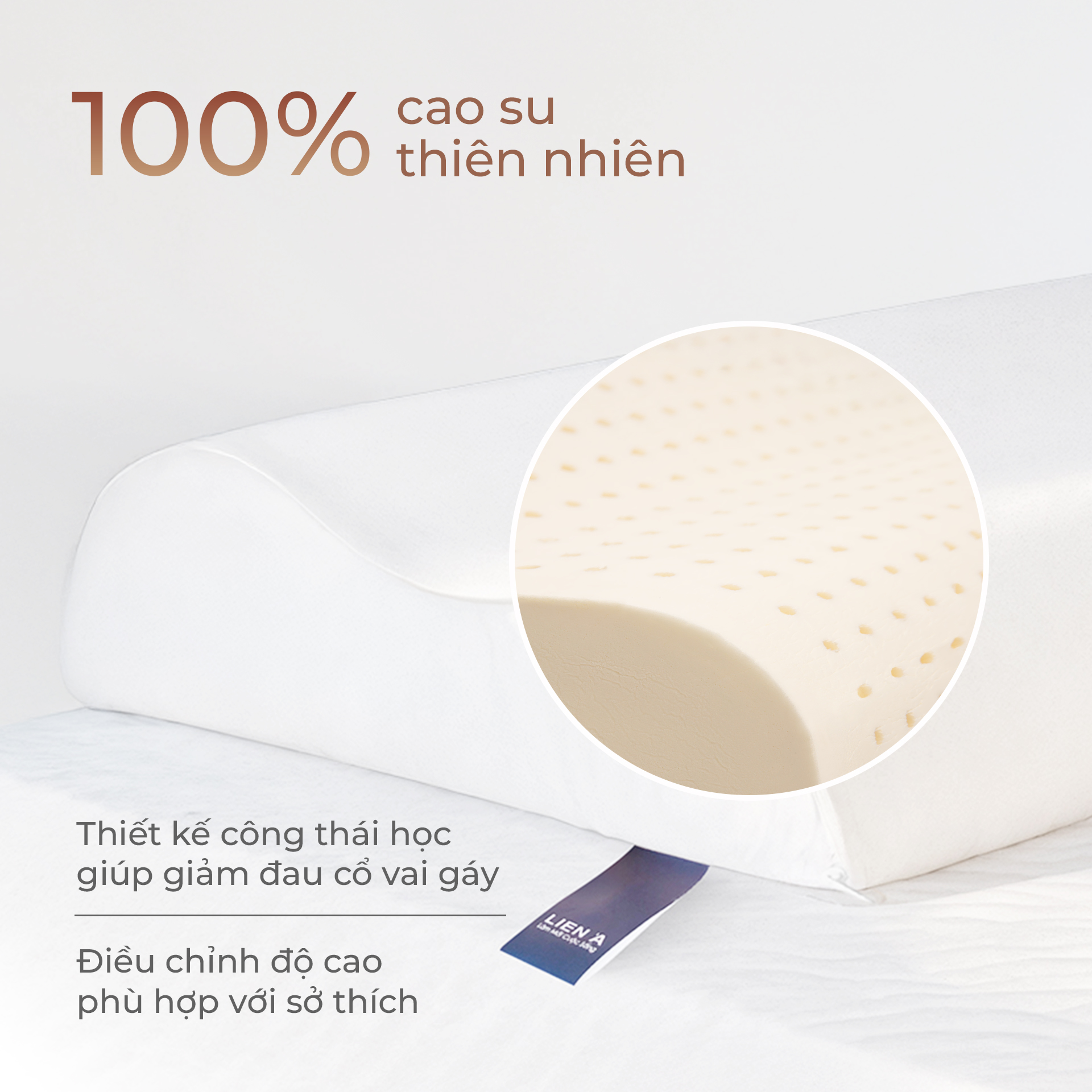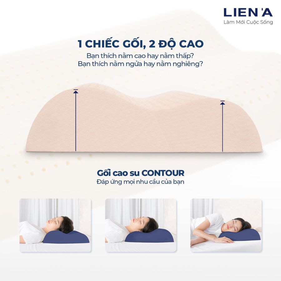 Gối cao su Contour LIÊN Á được làm từ 100% cao su thiên nhiên với thiết kế công thái học ôm sát vùng cổ vai gáy, giúp bạn ngủ ngon hơn, hạn chế đau mỏi và ngáy ngủ. Sản phẩm phù hợp cho người lớn tuổi, thường xuyên đau vai gáy hoặc trở mình khi ngủ.