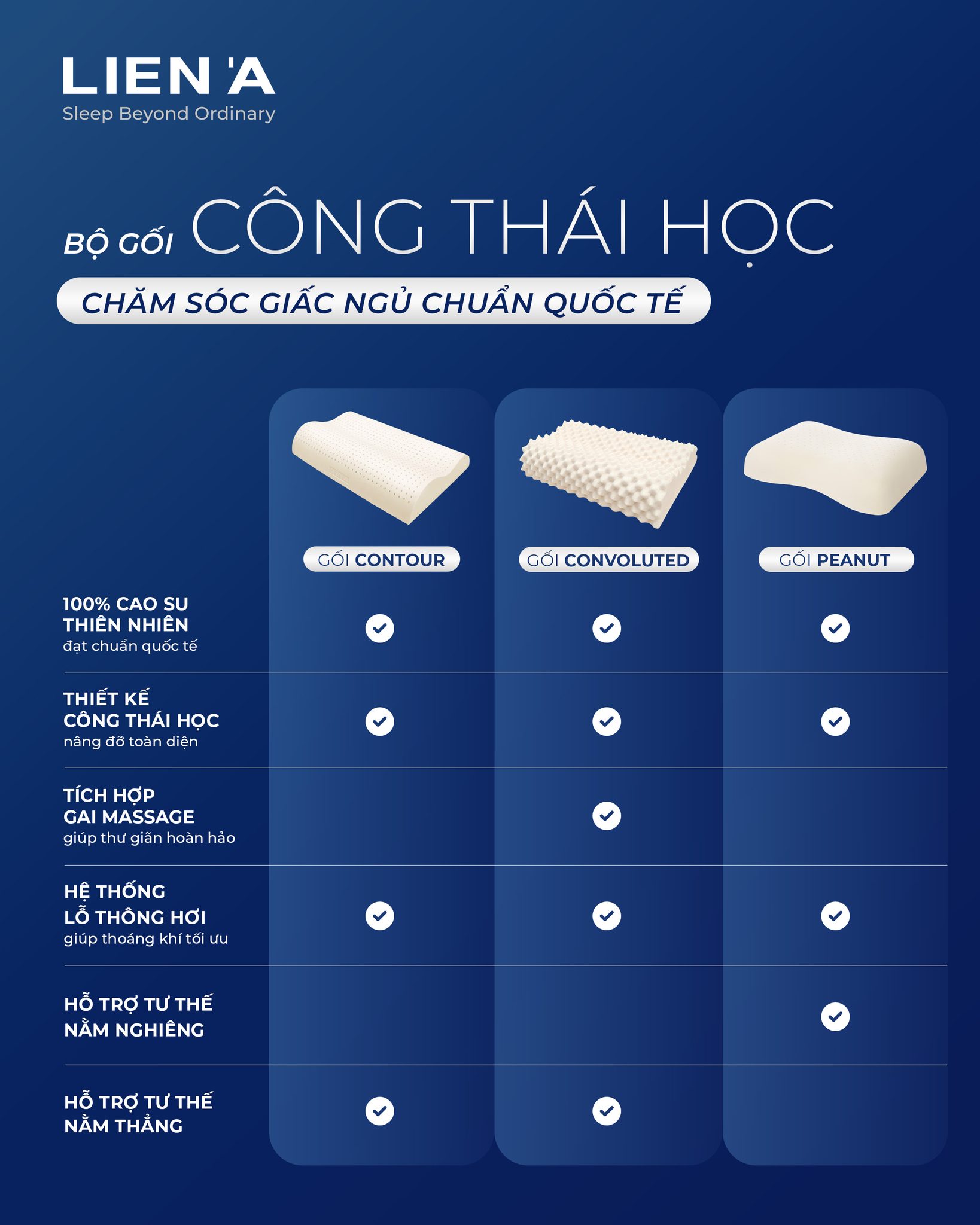 Gối Cao Su Lượn Sóng Contour Liên Á Đạt Chuẩn ECO An Toàn, Thiết Kế Công Thái Học Nâng Đỡ Êm Ái