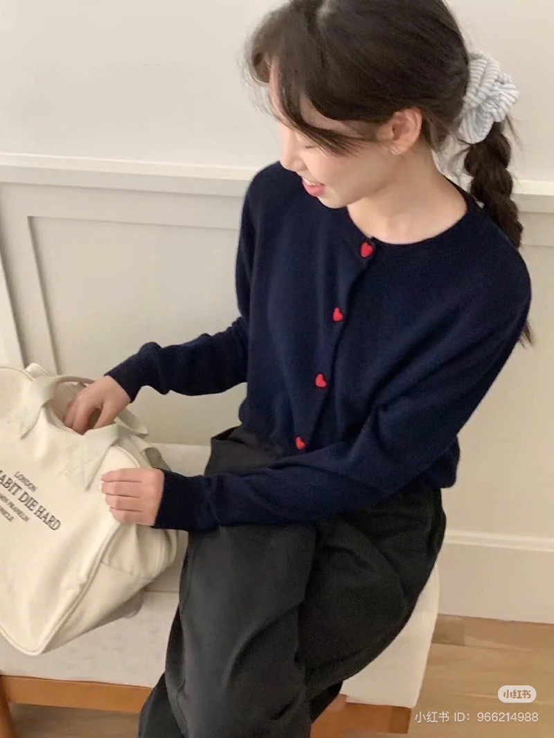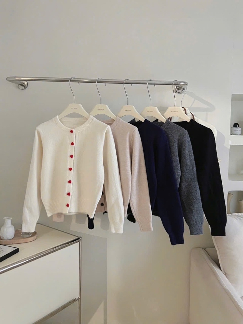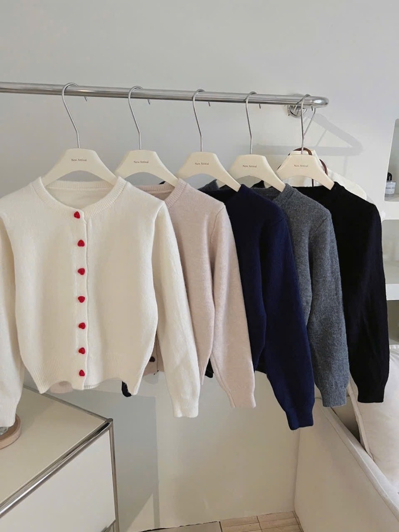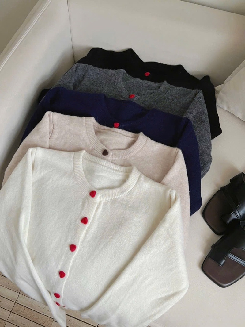 Áo len cadigan Cúc Tim 5 màu basic hàng QCCC phong cách Hàn