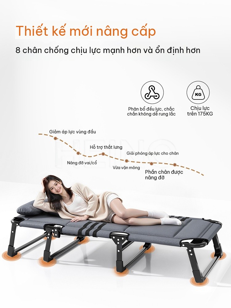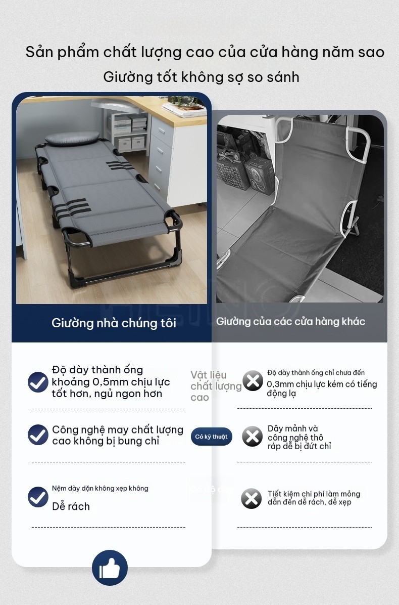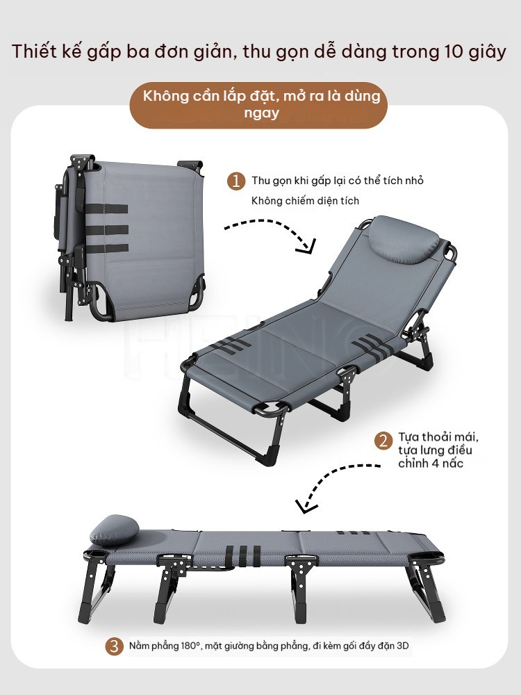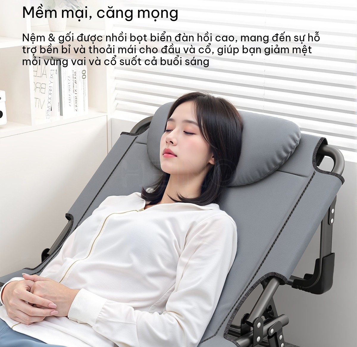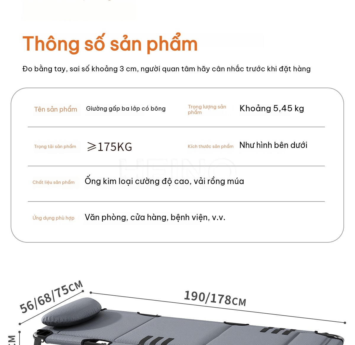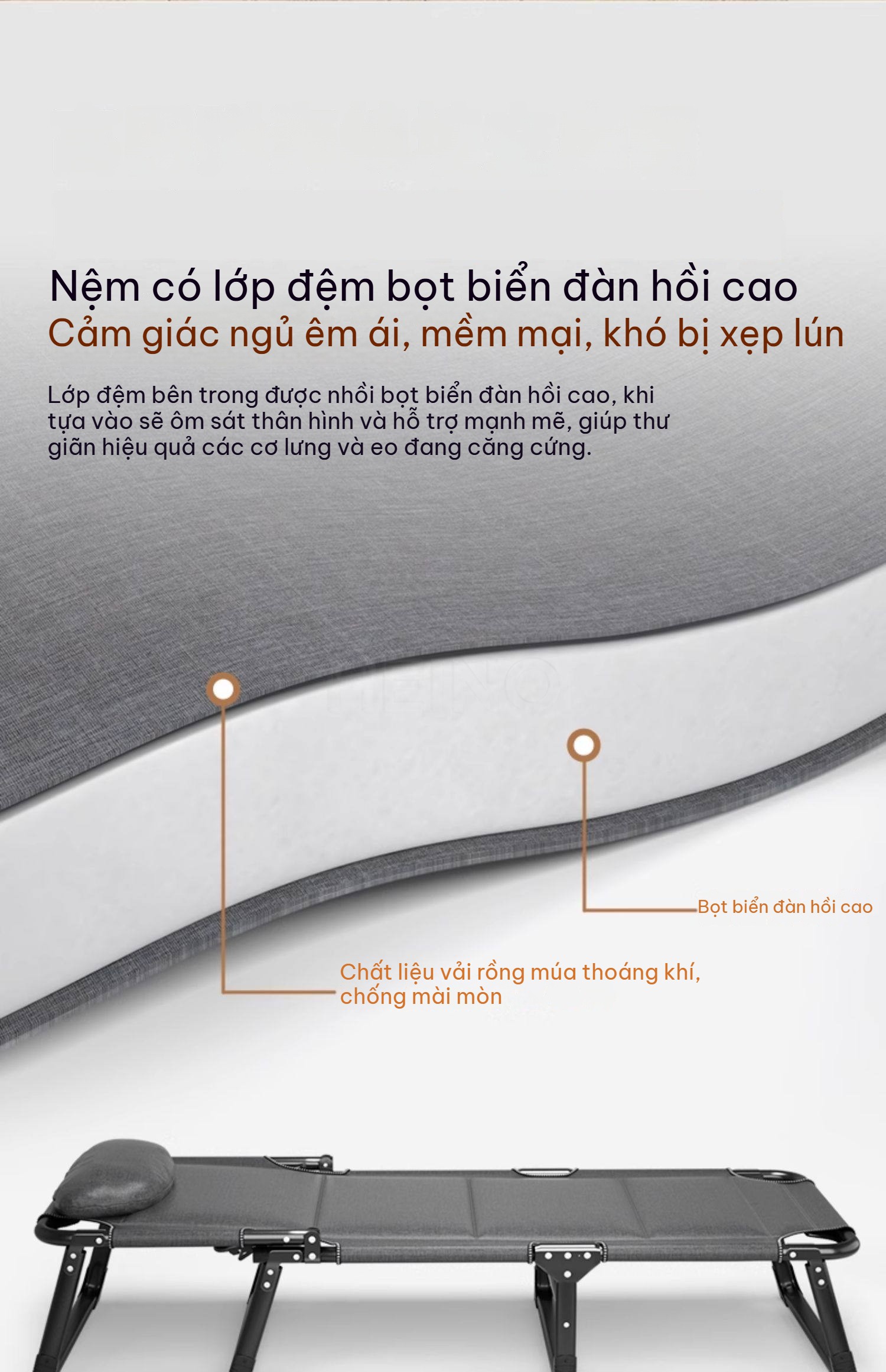 HEINO Giường Xếp Văn Phòng Có Đệm Giường Gấp Gọn Đa Năng Khung Phủ Sơn Tĩnh điện Hàng Cao Cấp