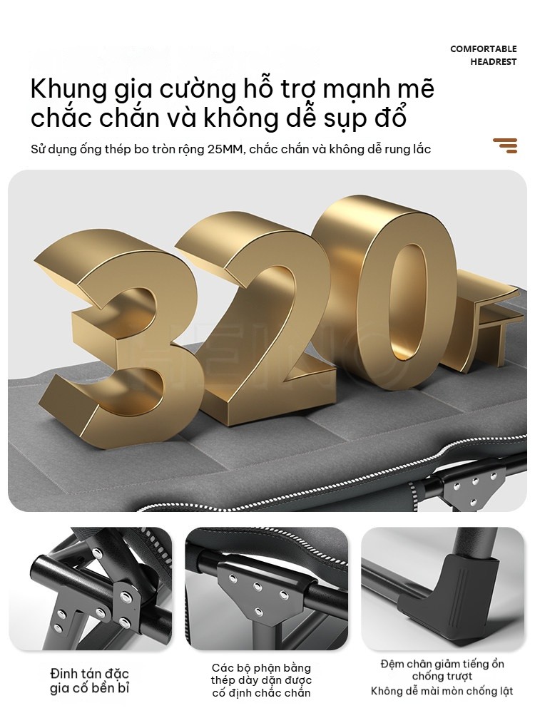 ✨Khung hợp kim chịu lực dày dặn được phủ sơn tĩnh điện,Thiết kế đệm đặc biệt giúp nâng đỡ cơ thể êm ái dễ chịu