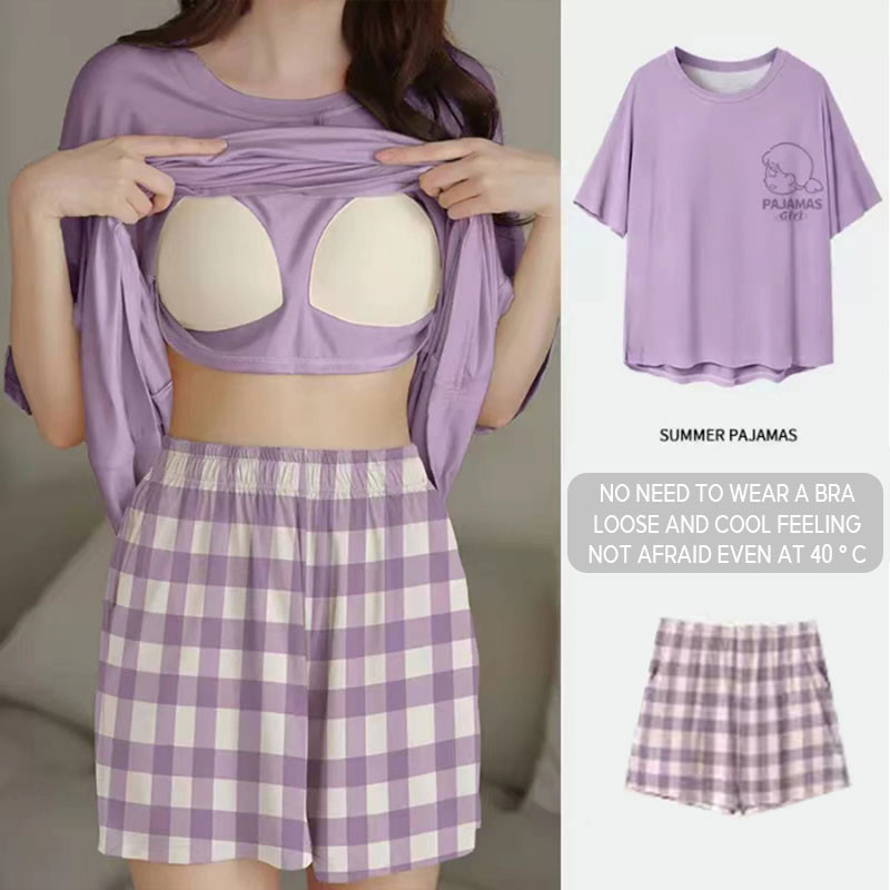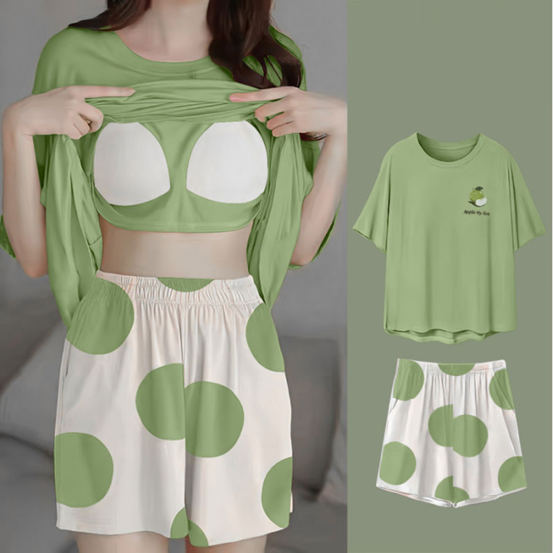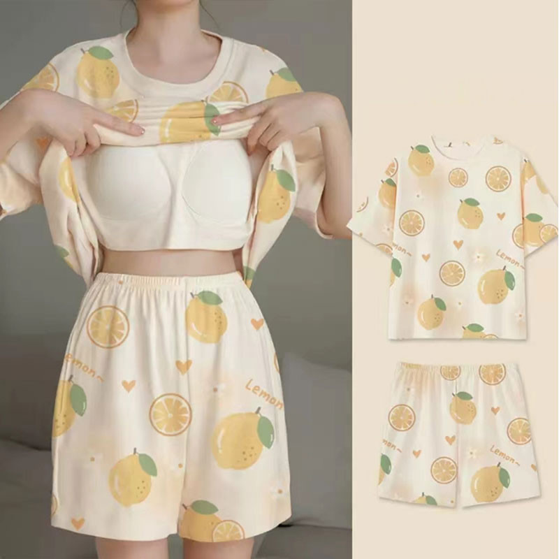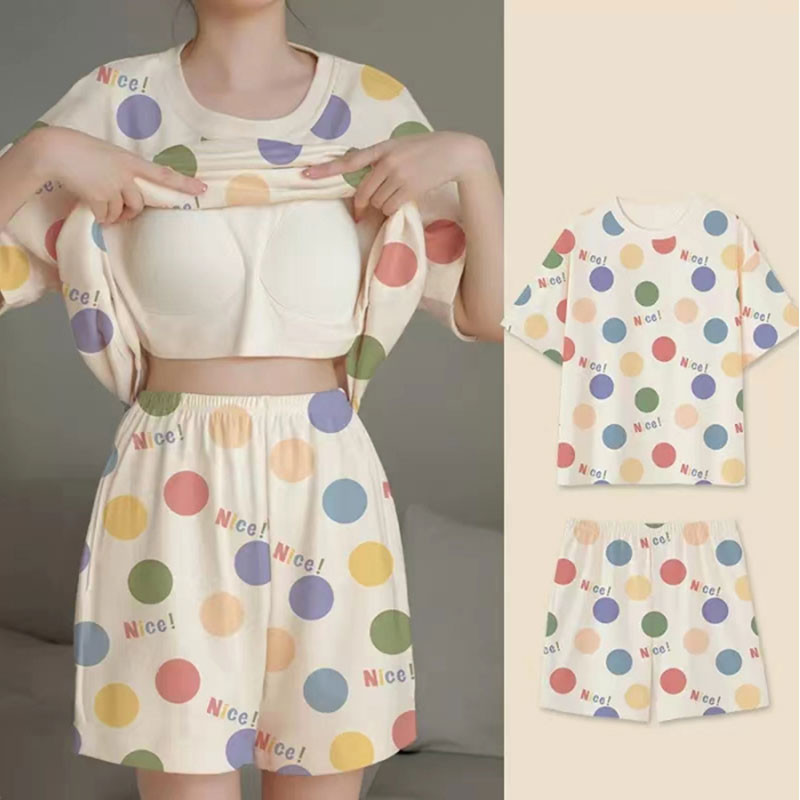 Heng Shan Yuan Bộ đồ ngủ nữ có miếng đệm ngực mặc thường ngày tại nhà Bộ đồ ngủ rộng rãi và đa năng