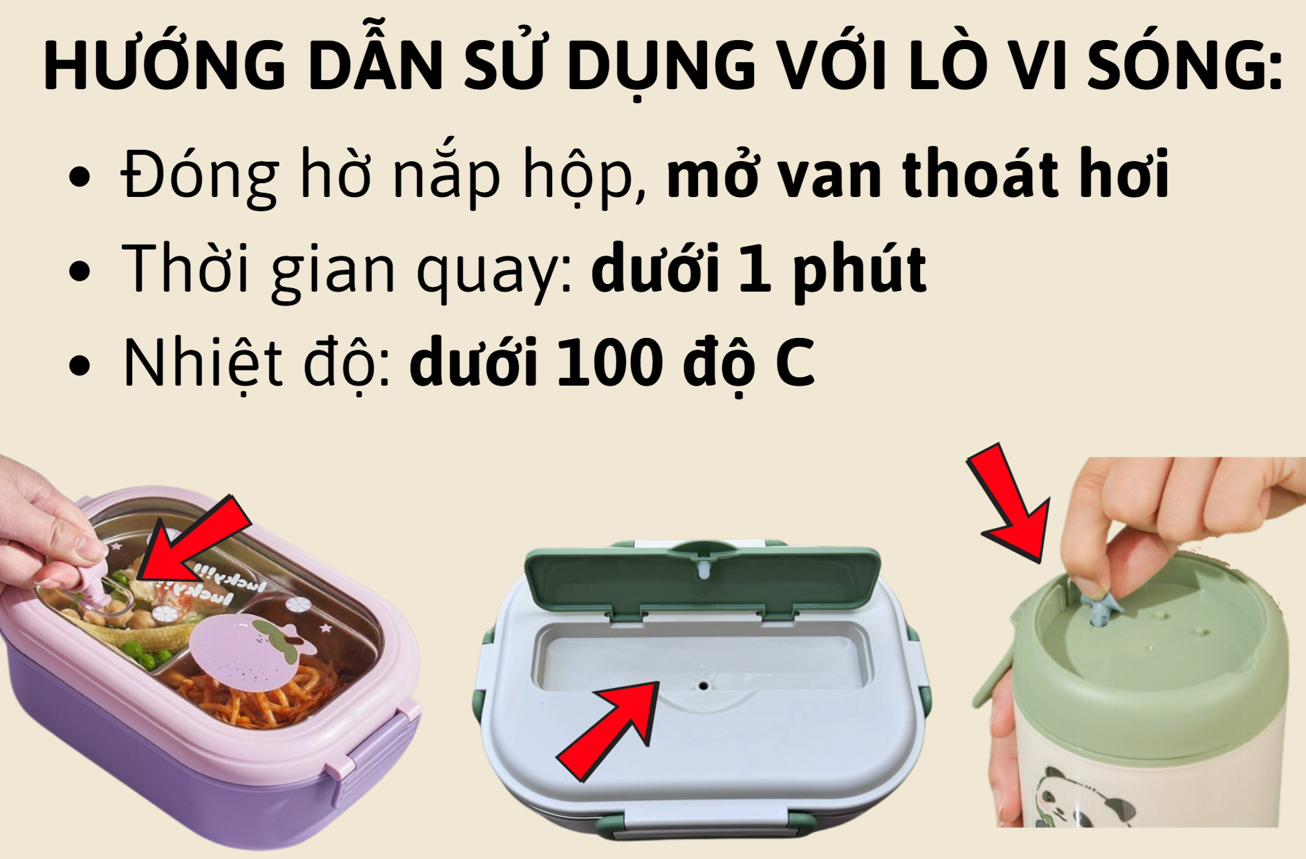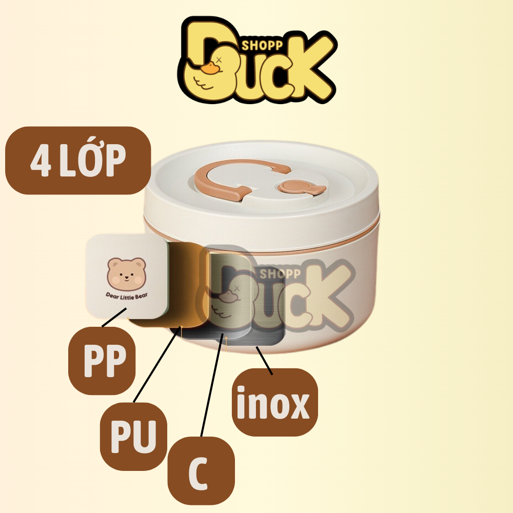 Hộp cơm giữ nhiệt Inox 304 cao cấp chống tràn có thể dùng cho lò vi sóng Dear Bear (Tặng muỗng đũa)
