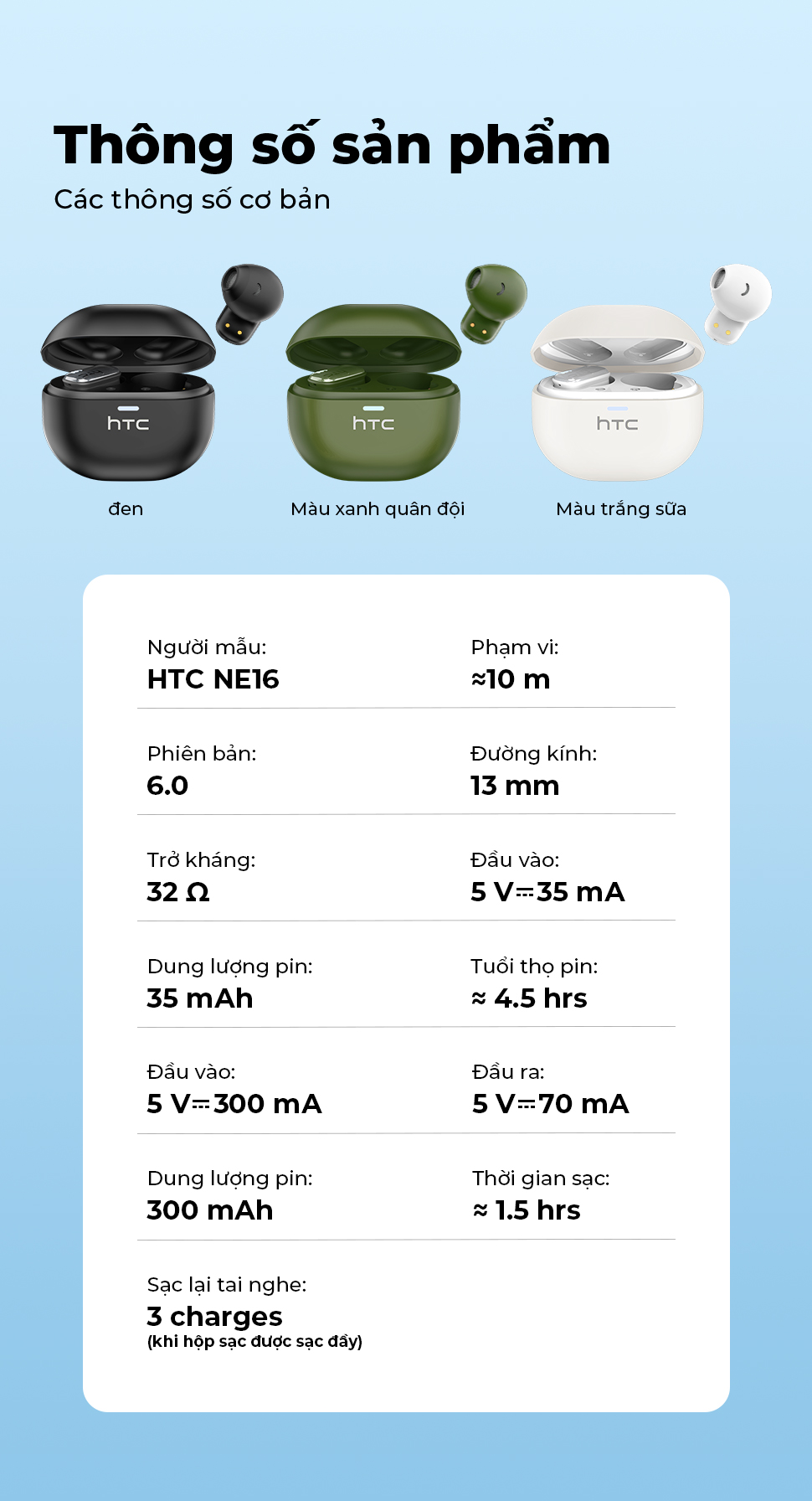 Hộp sạc: có thể sạc tai nghe trong 20 giờ