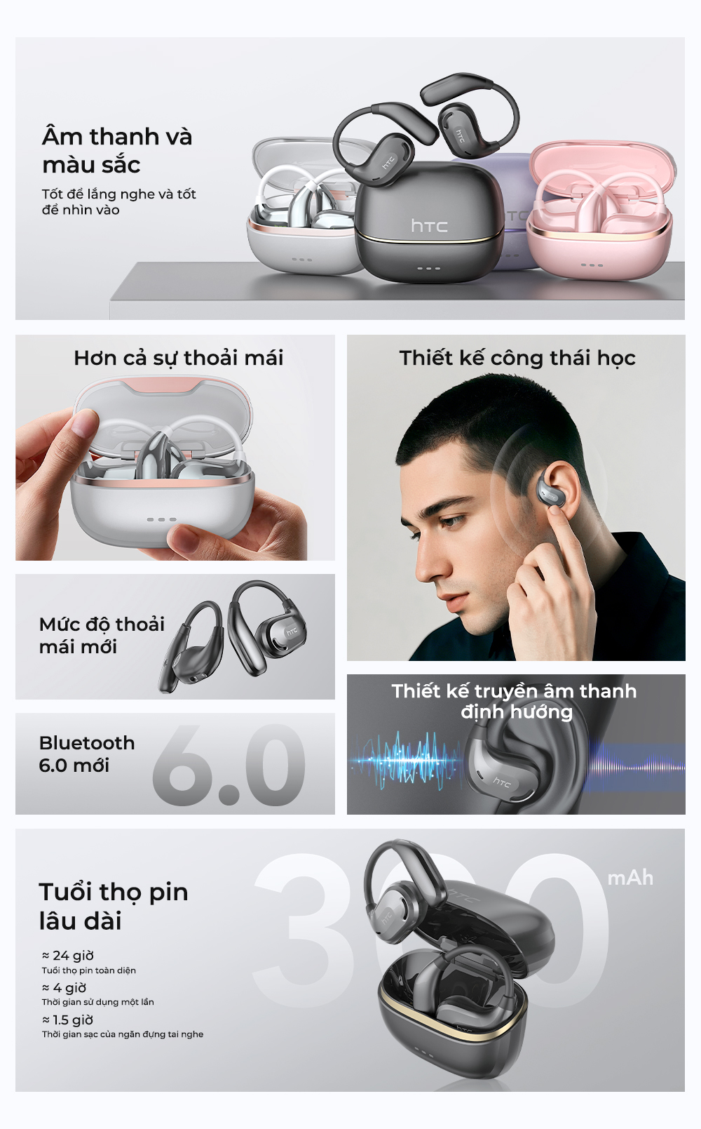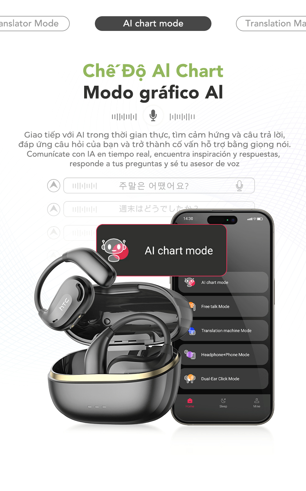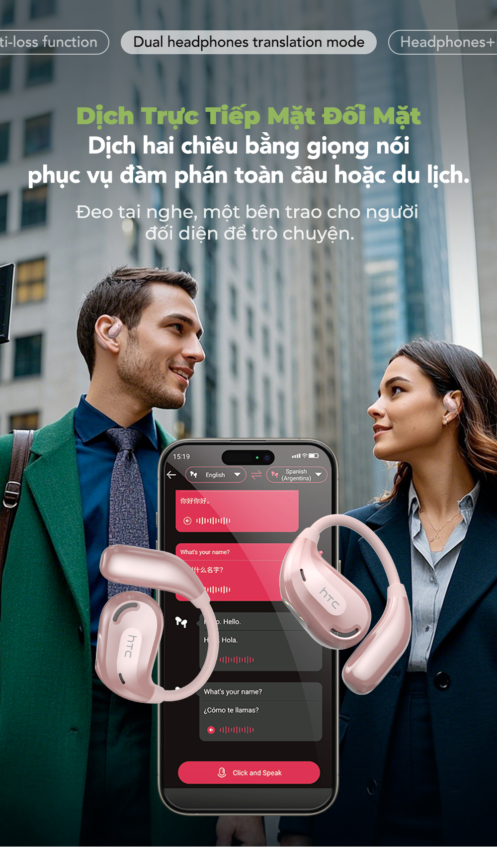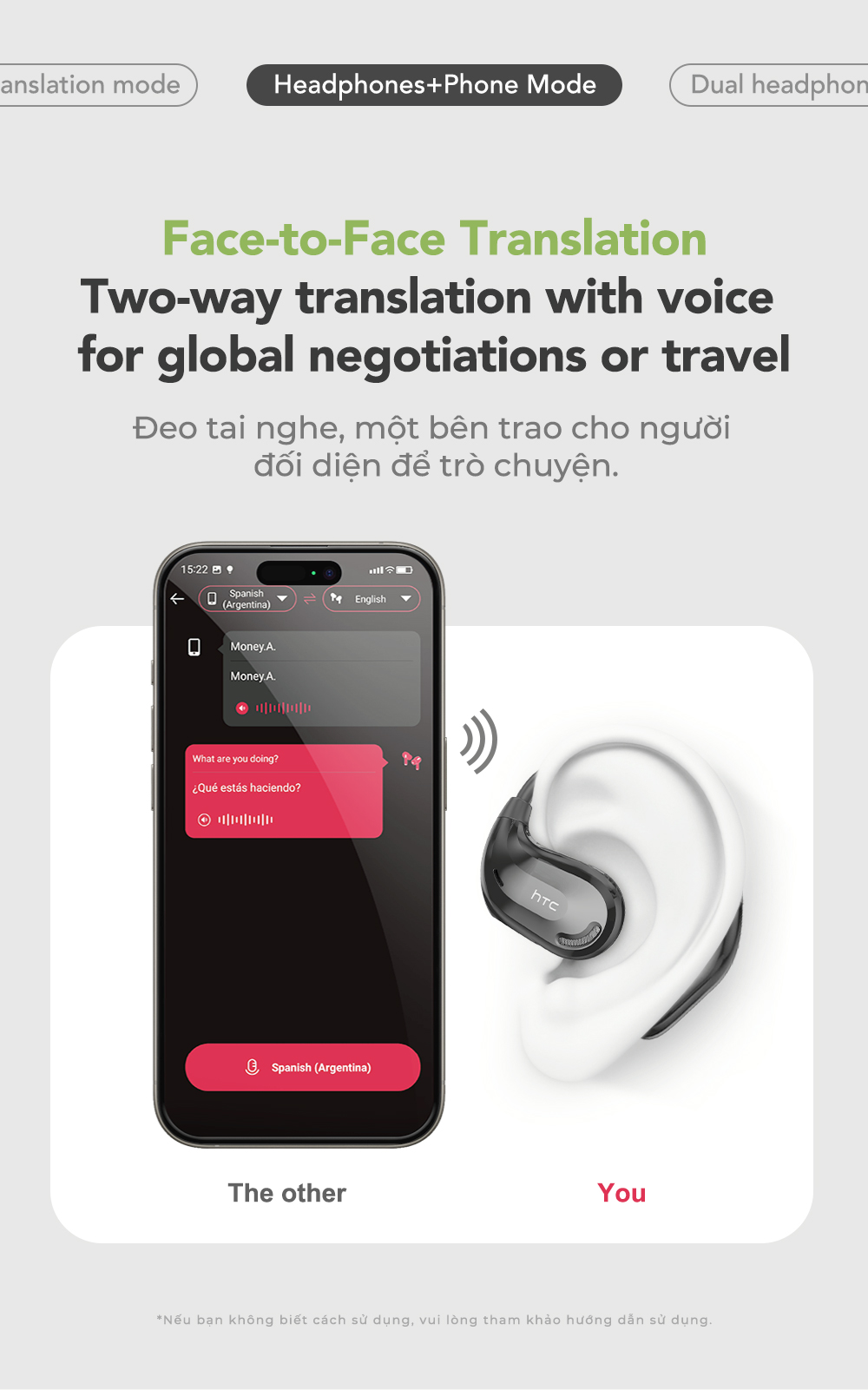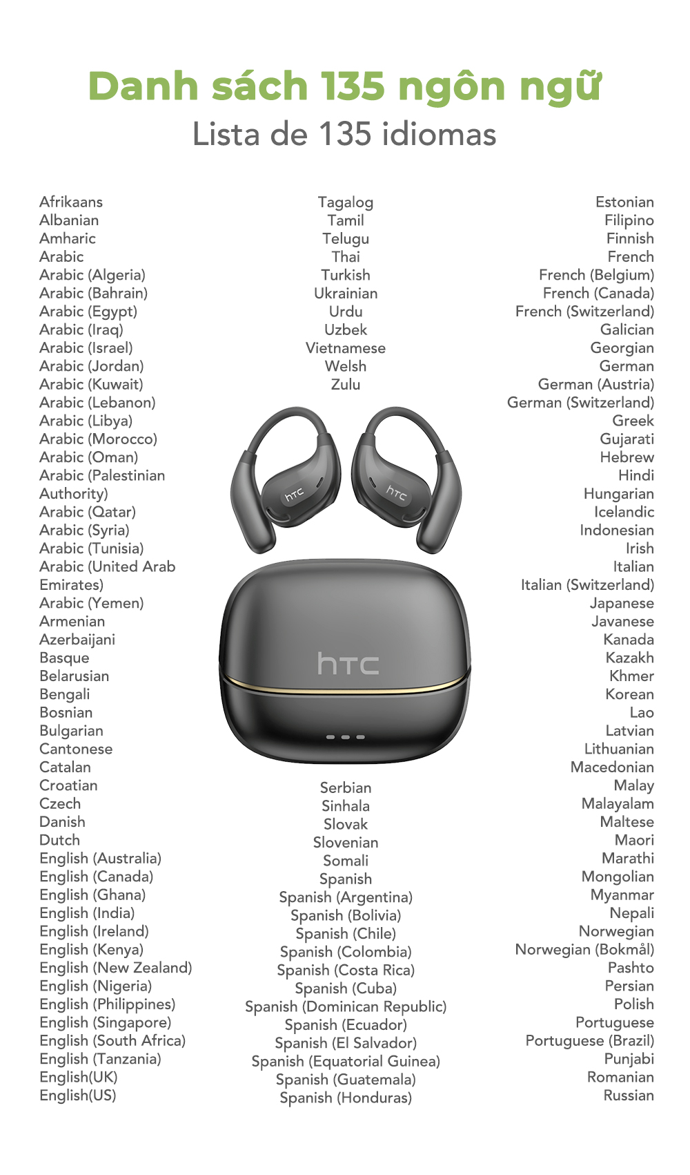 HTC NE18 Tai Nghe Phiên Dịch tai nghe bluetooth 6.0 Al Thông Minh Thời Gian Thực Dịch Tai nghe kinh doanh có Mic chống nước IPX5