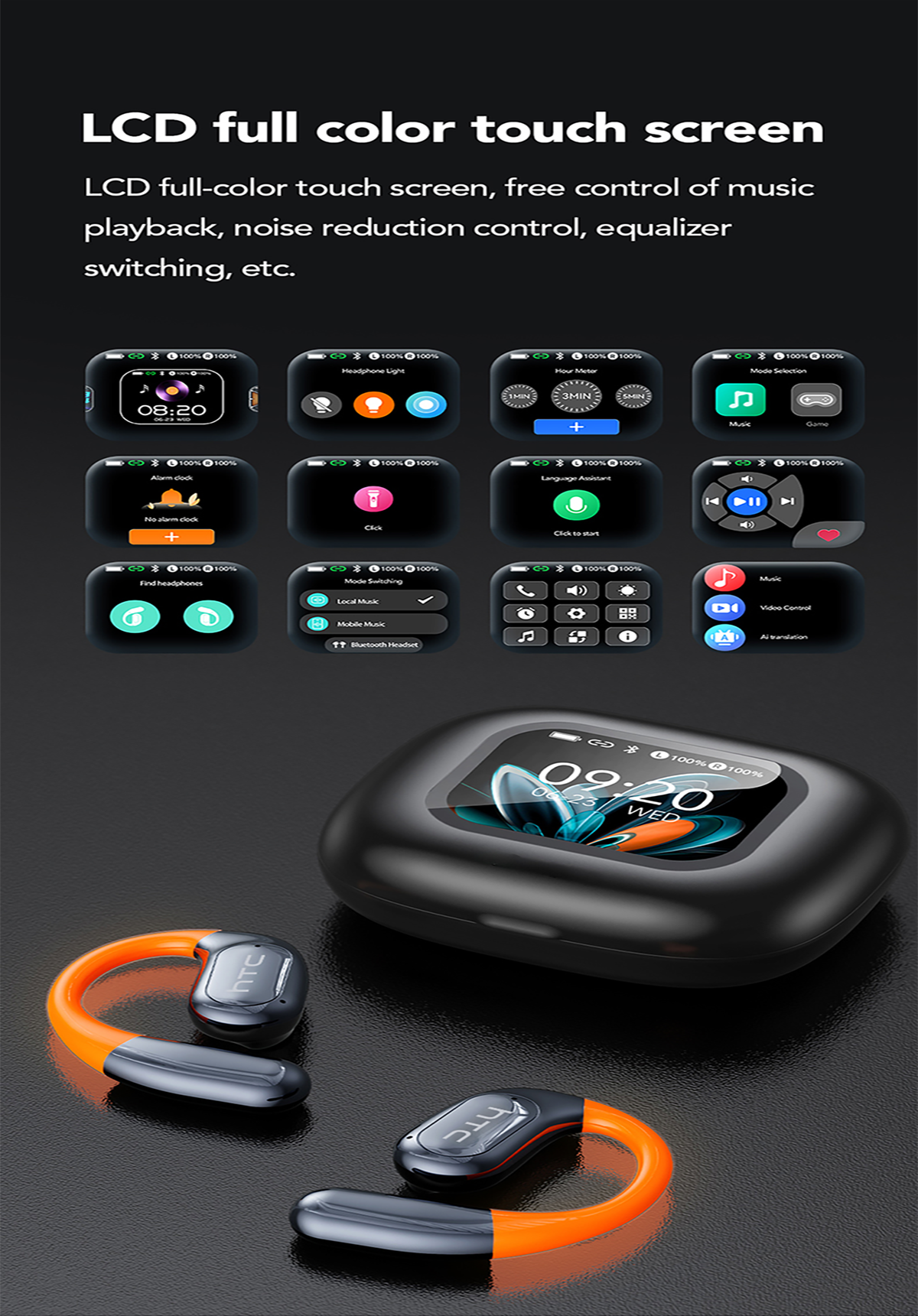 HTC NE27 Tai Nghe Phiên Dịch AI Tai nghe không dây Bluetooth 5.4 Dịch hai chiều 134 ngôn ngữ Màn hình cảm ứng LED Tai nghe doanh nhân Có micro Chống nước IPX5