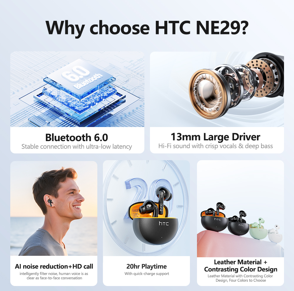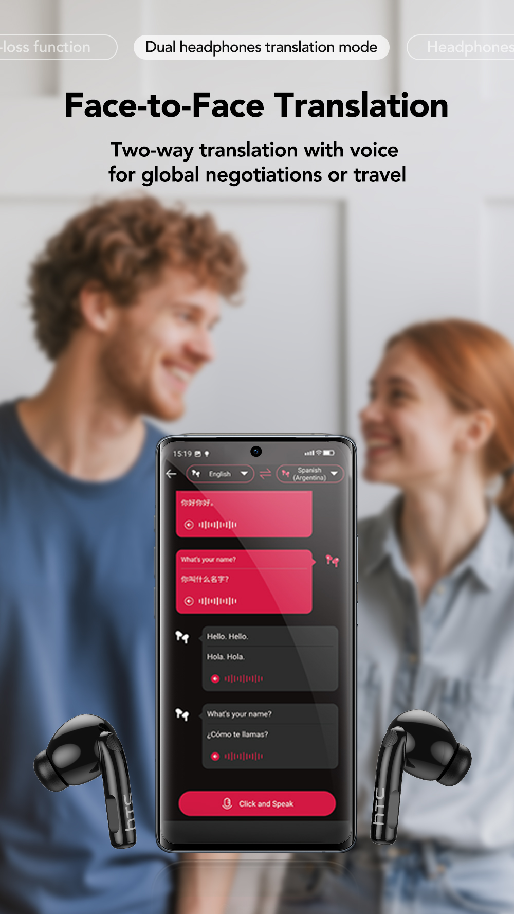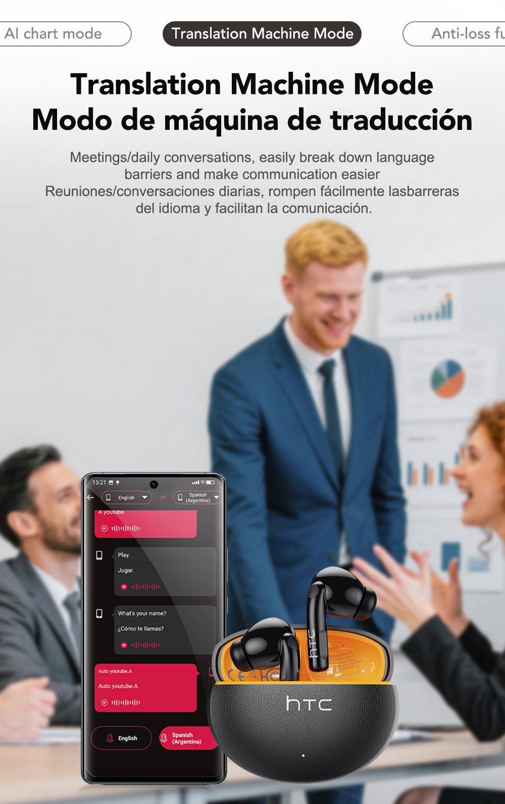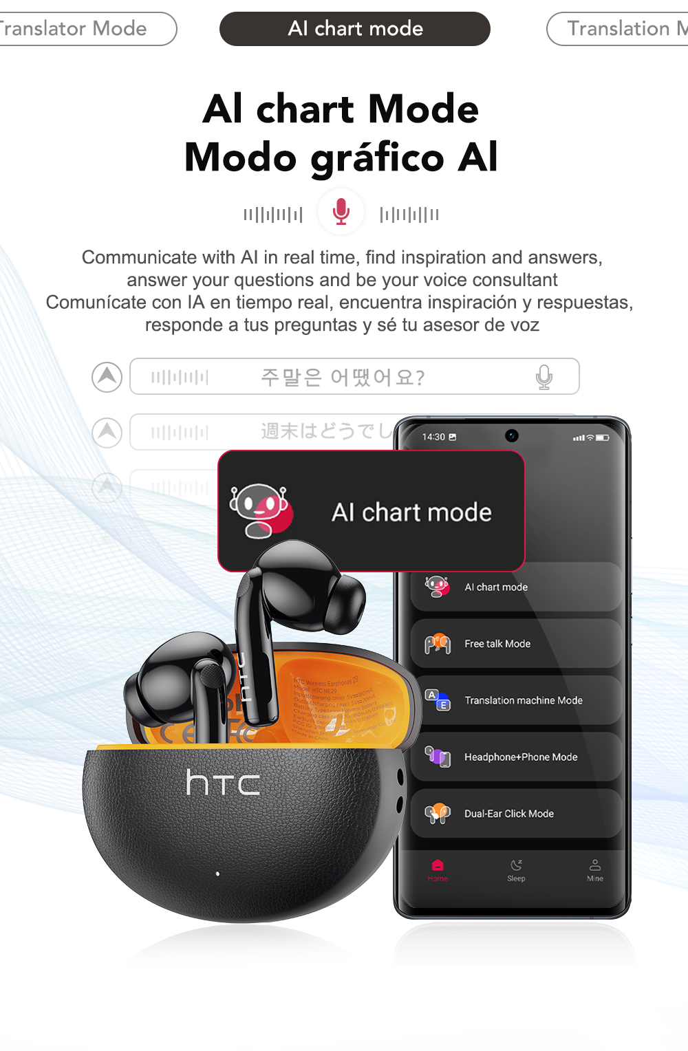 HTC NE29 Tai Nghe Phiên Dịch Dịch Thời Gian Thực 134 Ngôn Ngữ Bluetooth 6.0 Độ Trễ Thấp Âm Thanh HIFI