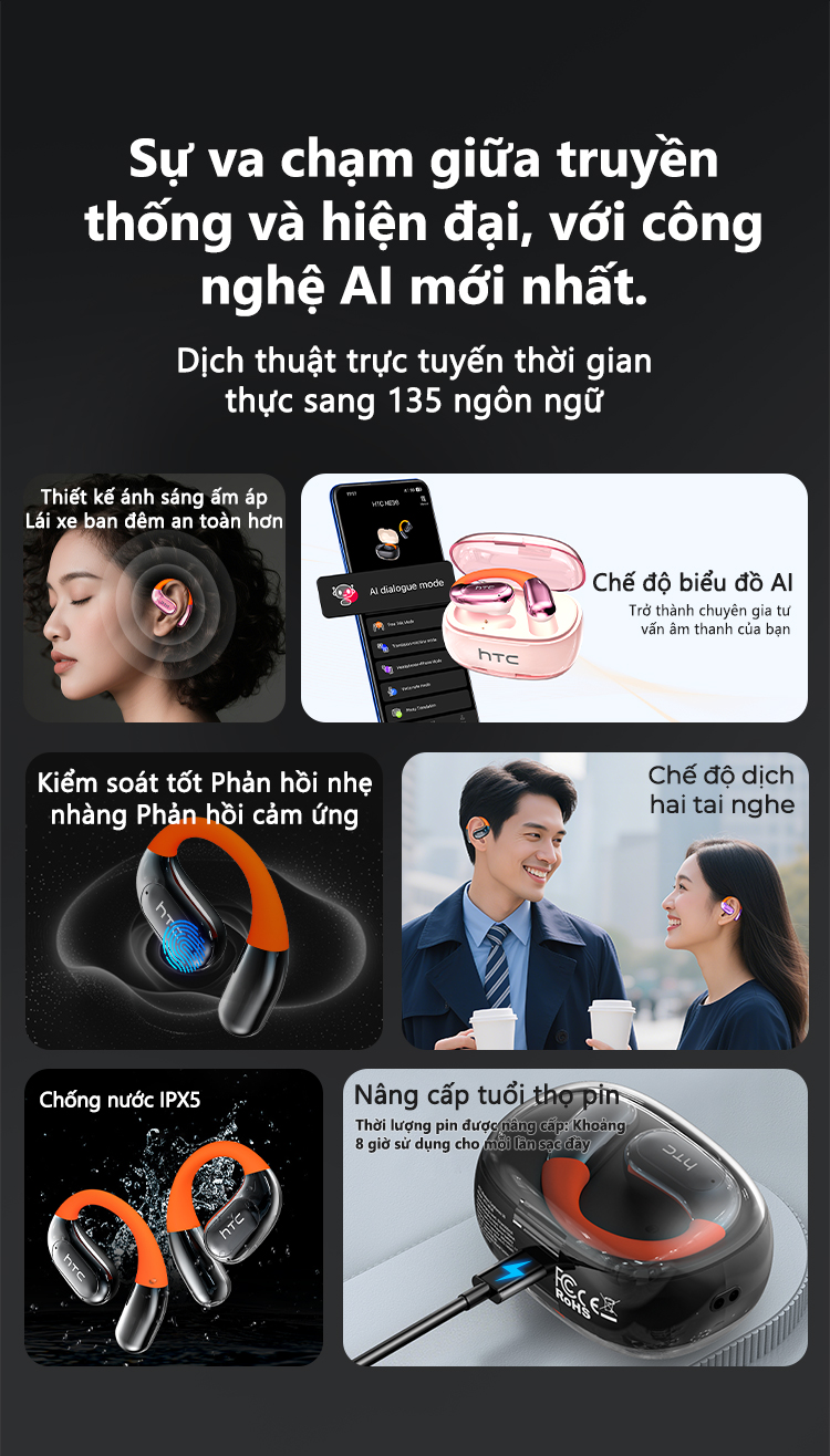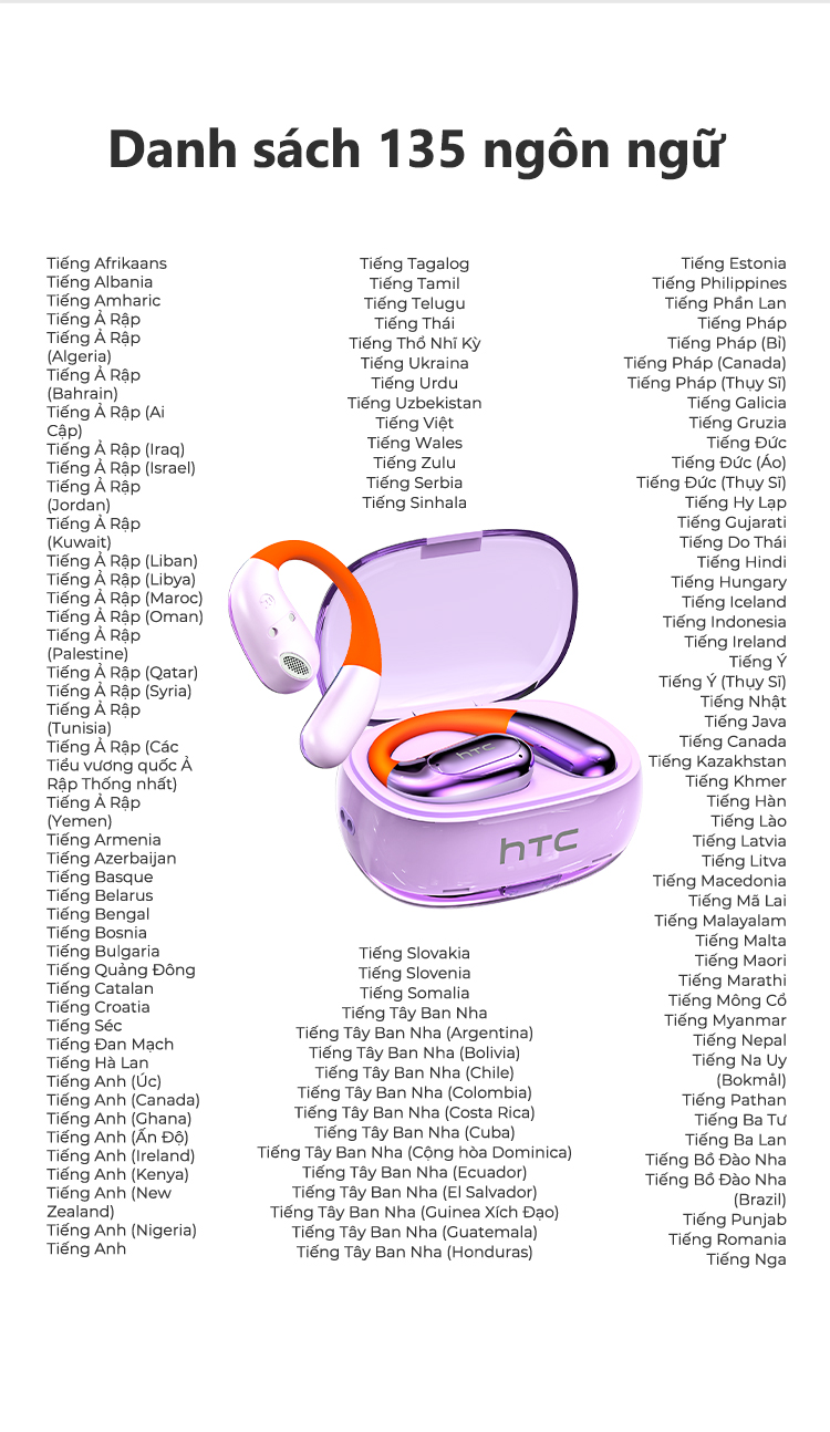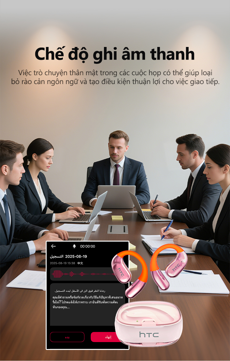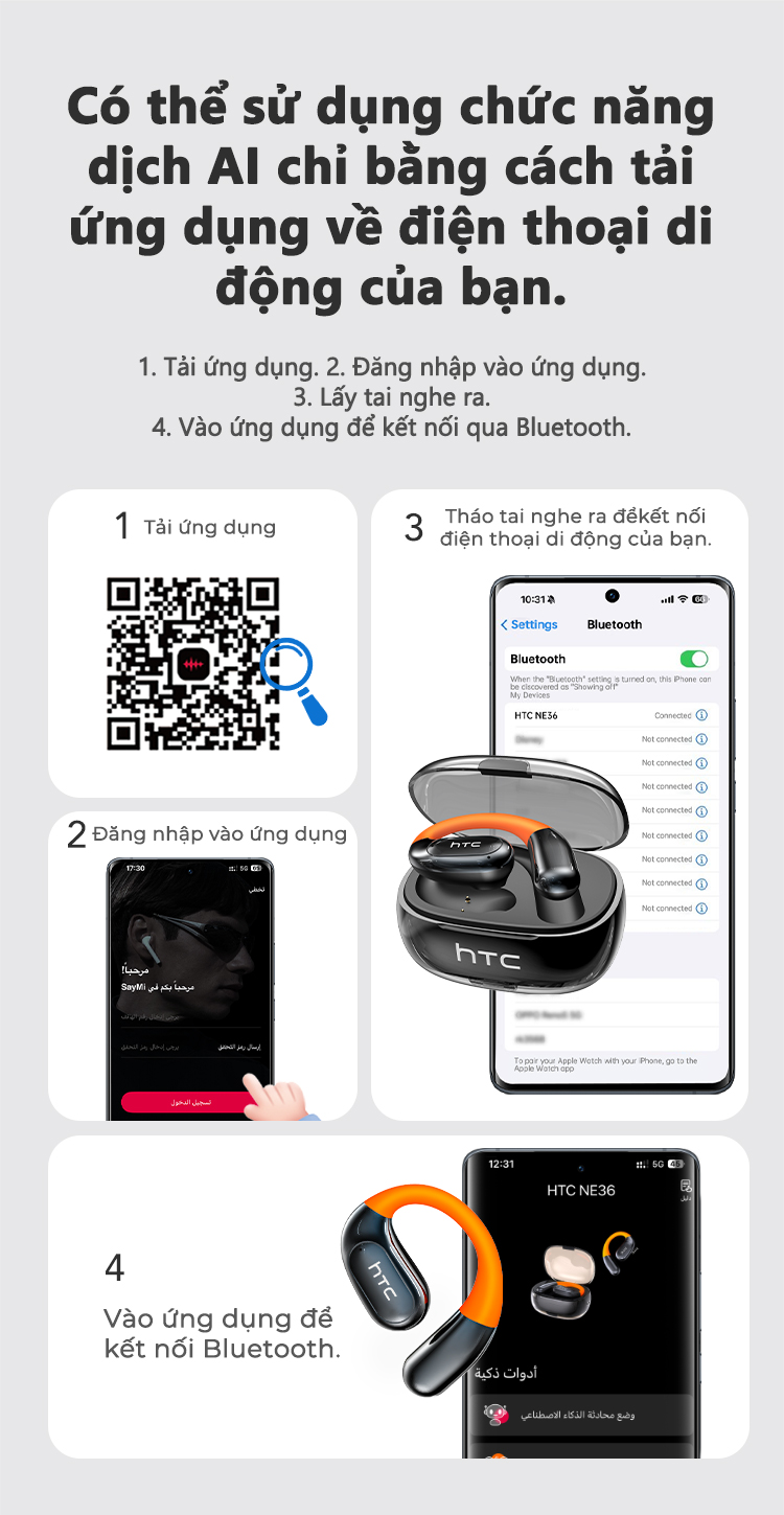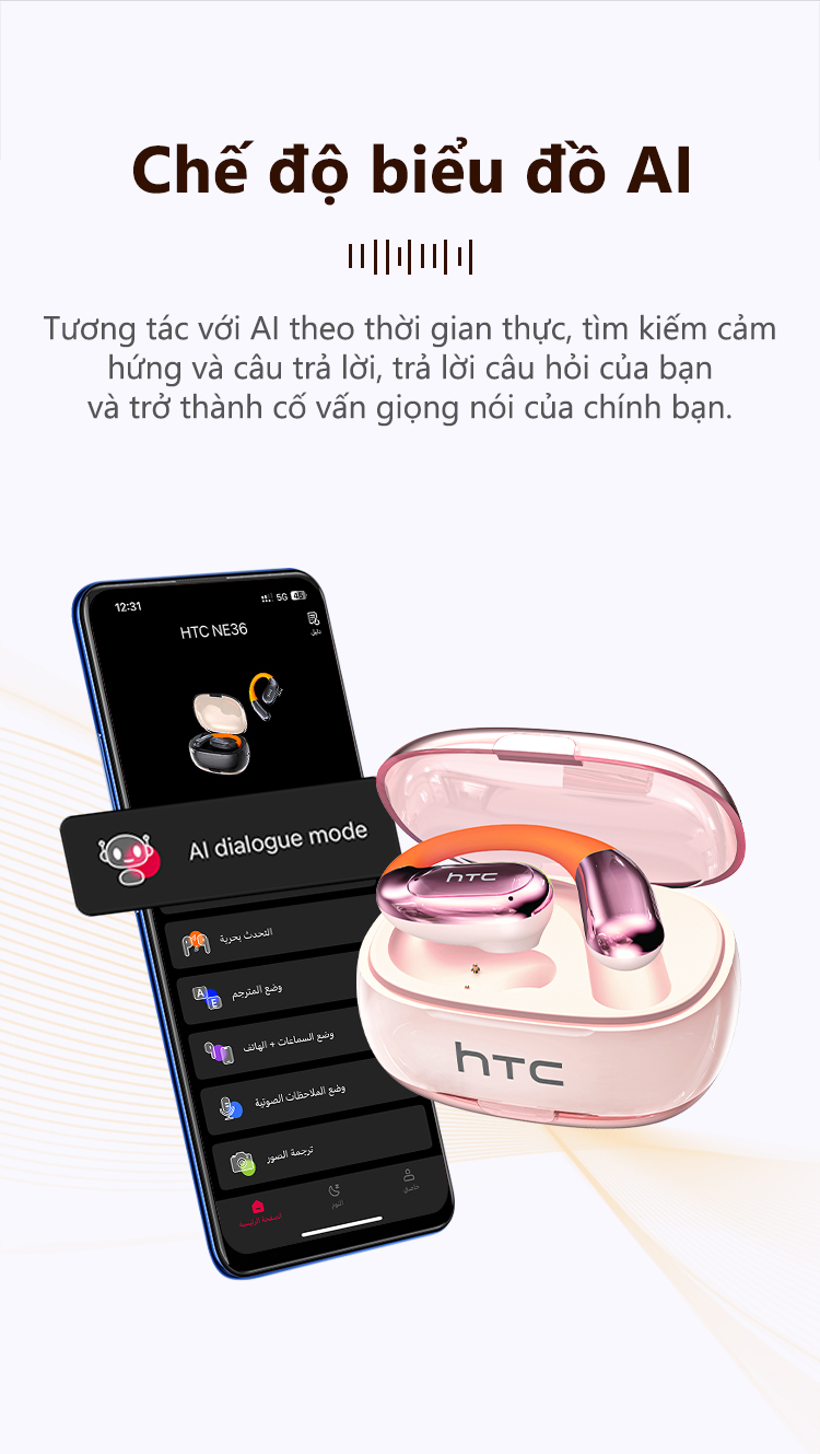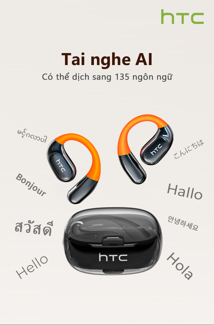 HTC NE36 Tai Nghe Phiên Dịch AI 134 Ngôn Ngữ Bluetooth 6.0 Không Lag Khử Ồn Cuộc Gọi HD