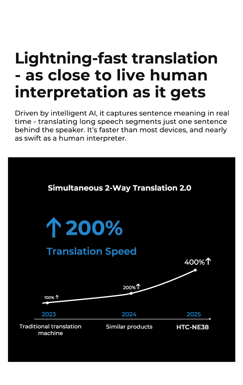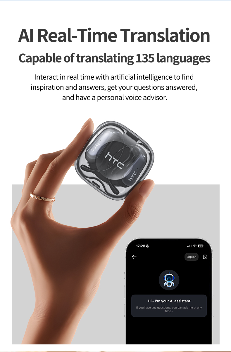 HTC NE38 Tai nghe phiên dịch 134 ngôn ngữ Tai nghe không dây có hộp sạc trong suốt MIC IPX5 chống nước