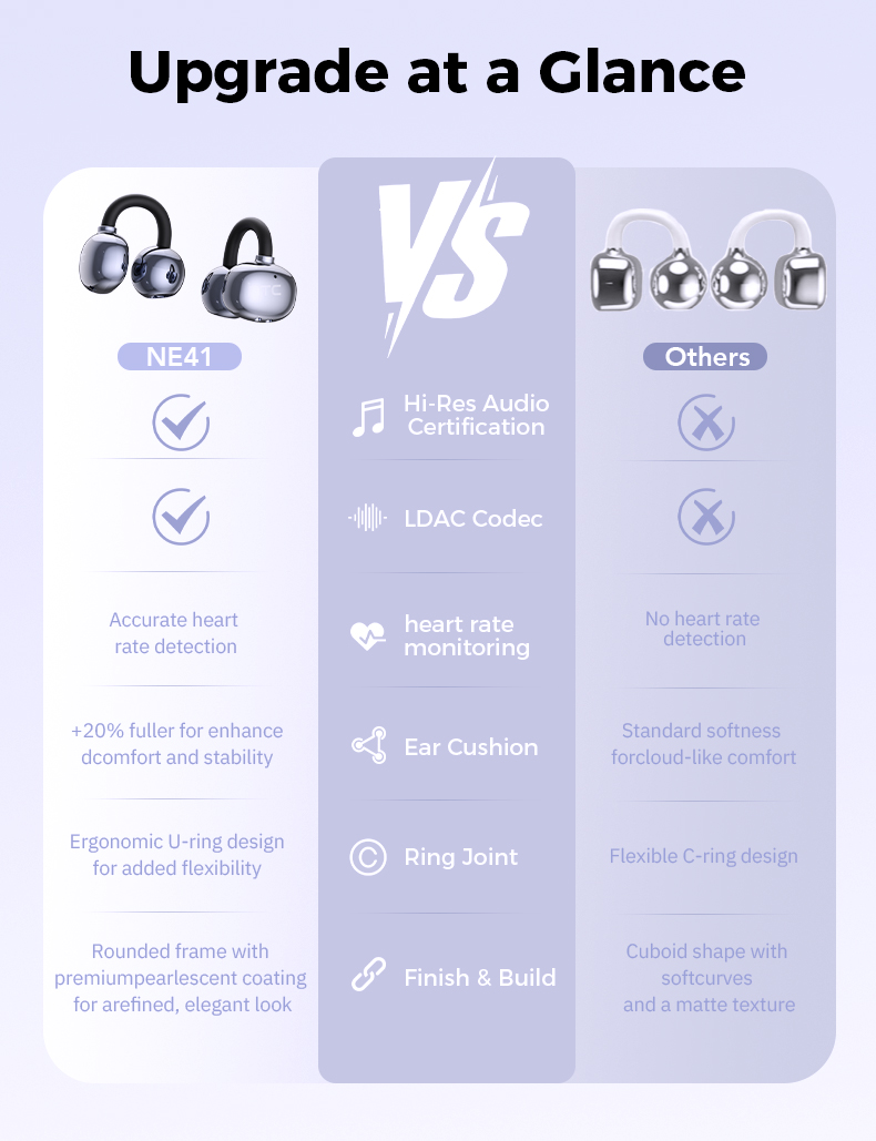 - Đặc trưng với vẻ ngoài thời trang với màu tím độc đáo và hộp sạc trong suốt, thể hiện cá tính và gu thẩm mỹ thu hút người tiêu dùng có ý thức về thời trang.