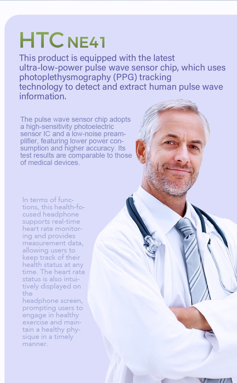 HTC NE41 Tai nghe không dây Theo dõi nhịp tim Màn hình cảm ứng LCD Tai nghe kẹp tai TWS Bluetooth 6.0 IPX5 chống nước